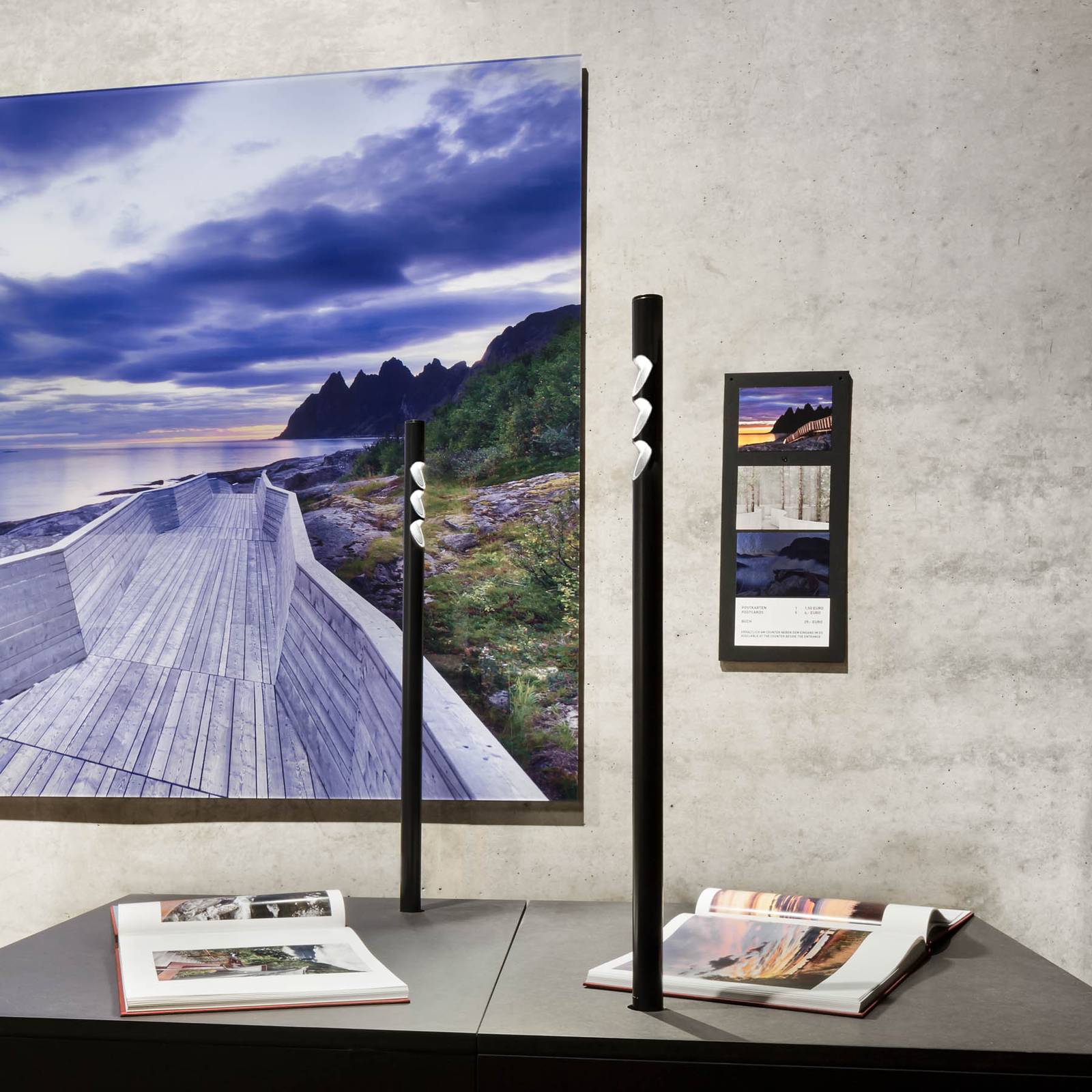 Minimalistische LED-bureaulamp Lucy van ERCO – kan in tafelblad worden geschroefd Een buisvormig aluminium profiel met poedercoating vormt de behuizing van de Lucy LED-bureaulamp. De LED’s zijn geïntegreerd in het bovendeel en hun licht wordt schuin naar beneden uitgestraald door drie naar één kant gerichte openingen, waardoor de tafel of het werkoppervlak wordt verlicht. Afhankelijk van de behoefte kan de lamp 180° gedraaid worden. Een drukknop met dimfunctie bevindt zich direct op de armatuur. Voor de montage is een opening van Ø 3,5 cm in het tafelblad nodig; het onderste uiteinde van het aluminium profiel wordt in deze opening geschroefd met de bijgeleverde borgmoer. De stroomvoorziening geschiedt via de meegeleverde kabel met plug-in voedingseenheid. – Met montagehuls van messing met poedercoating voor tafelbladdiktes van 1 tot 4 cm. – Reflector: kunststof, aluminium verdampt, glanzend zilver – voorzien van zachte lens – Antiverblindingselement: kunststof, zwart – Aangesloten vermogen: 13 W