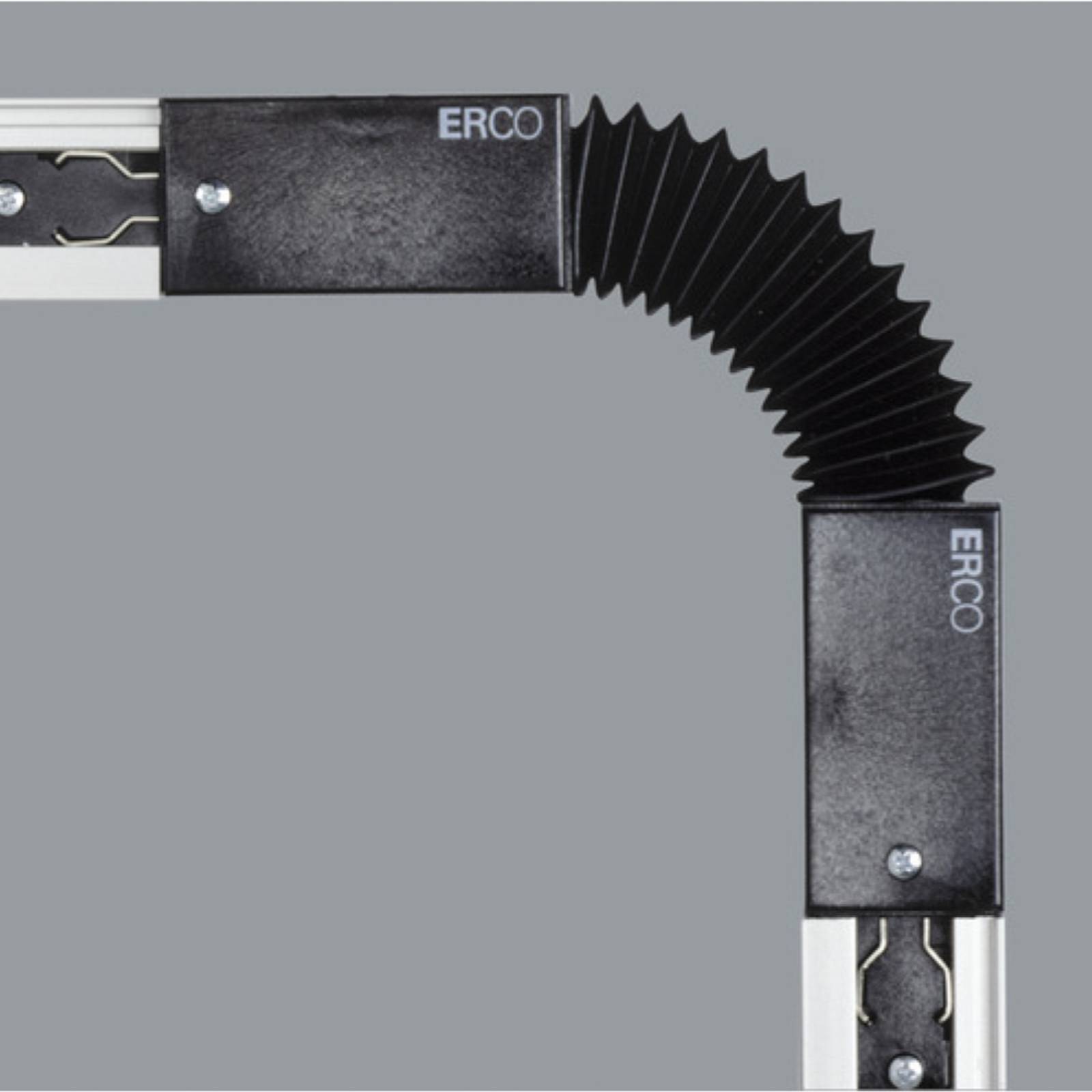 Multiflex koppeling voor ERCO 3-fase rails Deze koppeling met kunststof behuizing en flexibel middenstuk dient als flexibele verbinding tussen twee 3-fase stroomrails. Feed-in mogelijk, door-bedrading.