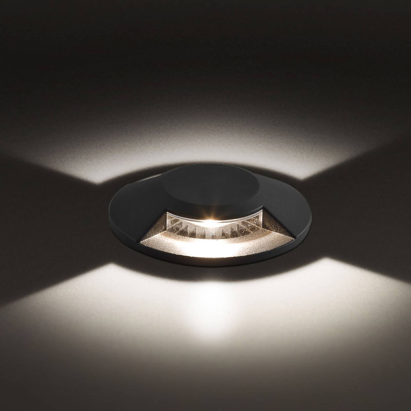 LED-vloerinbouwarmatuur Scopum in antraciet met tweezijdige lichtuitstraling Het warmwitte licht van de LED’s die in de Scopum vloerinbouwarmatuur zijn geïnstalleerd, straalt naar twee kanten onder een hoek van telkens 100°, waardoor de armatuur perfect geschikt is als oriëntatiearmatuur in de vloer of ook in een wand, bijvoorbeeld om paden of trappen te verlichten. De armatuur wordt gemonteerd met de meegeleverde kunststof inbouwbehuizing. De bij de levering inbegrepen tweede kabelwartel voor kabels tot 8 mm maakt doorvoerbedrading mogelijk bij de installatie van meerdere armaturen. De Scopum vloerinbouwarmatuur mag belopen worden en er mag overheen gereden worden met een fiets e.d., maar er mag niet overheen gereden worden met een auto of vrachtwagen. Dankzij het gepoedercoate aluminium waarvan de armatuur is gemaakt, is zij ook geschikt voor gebruik in kustgebieden. – Max. draagvermogen 500 kg