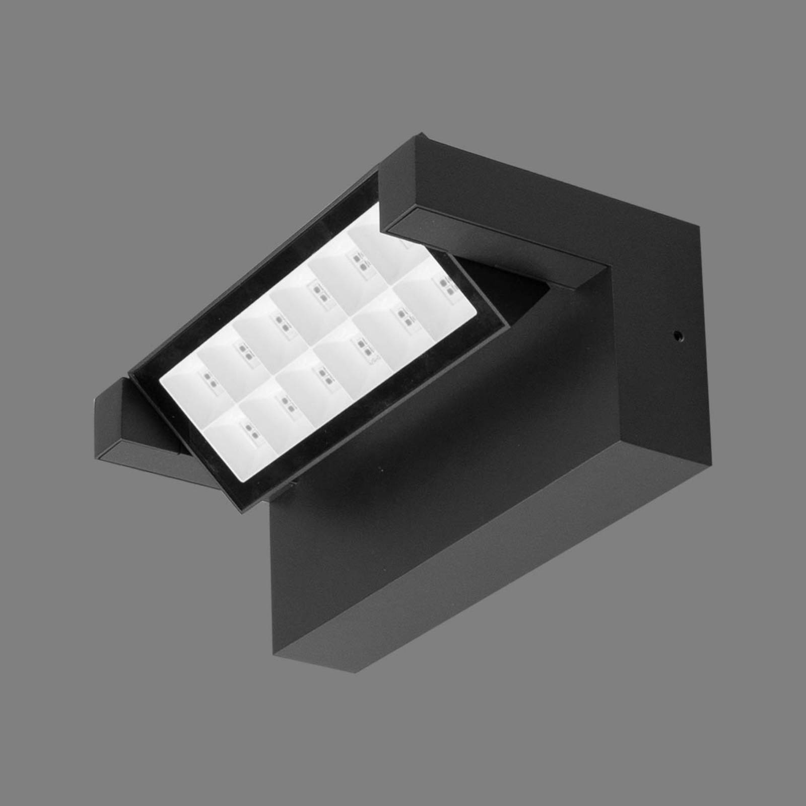 Robuuste LED-buitenwandlamp Wav met draaibare armatuurkop De behuizing van de LED-buitenwandlamp Wav is gemaakt van gepoedercoat aluminium en is vervaardigd door middel van spuitgieten. Het wordt bekroond door een afdekking van helder glas die de draaibare armatuurkop siert. Het draaibereik van 190 graden laat veel ruimte voor creativiteit. De gevel kan effectief worden verlicht en meerdere Wav wandarmaturen zijn ideaal in combinatie als lichtshow. Naast het grote zwenkbereik biedt de hoogwaardige LED-module ook een zeer brede stralingshoek van ca. 90 graden. Daarom is deze wandarmatuur zeer geschikt om donkere plaatsen in de buitenruimte over een groot gebied te verlichten. Natuurlijk kan de Wav LED buitenarmatuur ook in droge ruimtes worden gebruikt en bijvoorbeeld trappenhuizen betrouwbaar van warm wit licht voorzien. – Stofdicht en beschermd tegen waterstralen (IP65) – Slagvastheid IK06 – Zeer brede bundelverdeling (90 °)