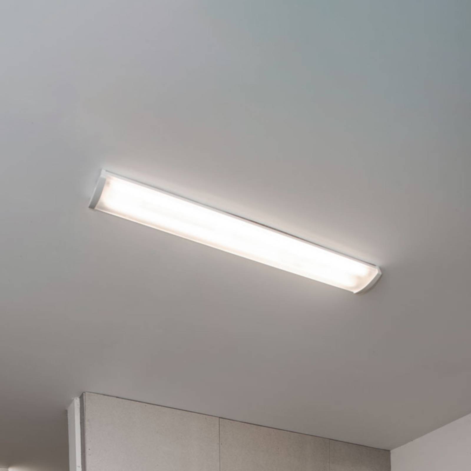 Spatwaterdichte LED-plafondlamp AllFive met twee vermogensniveaus De AllFive LED-opbouwarmatuur biedt effectieve en energiezuinige algemene verlichting voor gangen en recreatieruimten, garages, keukens en sanitaire ruimten. De armatuur met stalen behuizing, kunststof eindkappen en diffuser van prismatisch acryl heeft een neutraal optisch ontwerp in een witte rechthoekige vorm en geeft een wijd verspreid licht. AllFive is ontworpen voor directe schroefmontage aan het plafond en wordt geleverd met pakkingen om IP44-bescherming te garanderen. Als bijzonderheid is de plafondarmatuur uitgerust met een interne schakelaaroptie van 36 W tot 28 W om het lichtvermogen aan te passen aan de omstandigheden. – 5-polige aansluitklem – voorbereid voor doorvoerbedrading (5 x 2,5 mm²) – Afstand tussen de bevestigingspunten: 105 cm – met geïntegreerde LED-omzetter – Twee centrale invoermogelijkheden aan de bovenzijde – geen UV- en warmtestraling