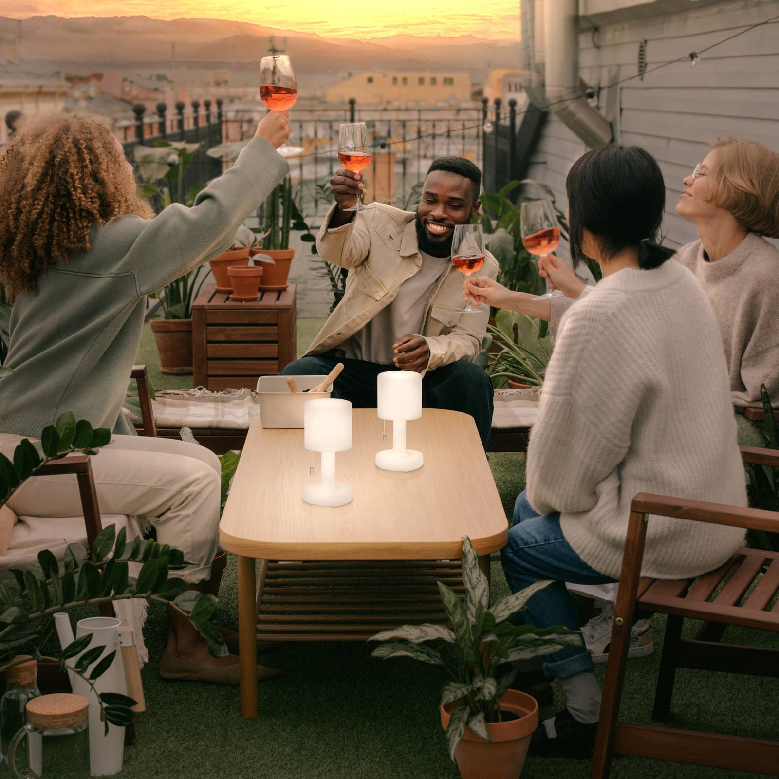 FH Lighting LED accu-tafellamp Termoli wit cilindrisch per 2