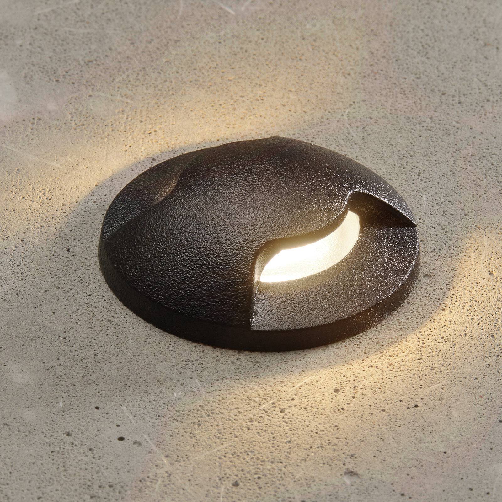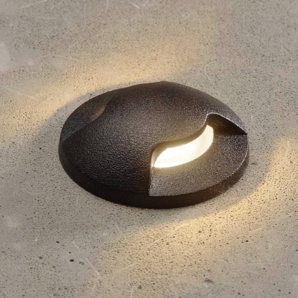 Teresa 2L ronde LED-inbouwarmatuur met zwart frame en twee smalle lichtopeningen Of het nu gaat om oriëntatieverlichting op het terras of om een sfeervol accent aan de gevel – de inbouwarmatuur Teresa schittert door haar veelzijdigheid. Hij kan worden gemonteerd op muren, vloeren of plafonds. Met zijn ronde, zwarte frame kan hij ook harmonieus worden geïntegreerd in vele designconcepten. Het licht wordt aan twee zijden uitgestraald door smalle uitsparingen, waarachter de gematteerde polycarbonaat diffuser zichtbaar is. Dankzij de robuuste en waterbestendige constructie van giethars is Teresa goed bestand tegen mechanische en weersinvloeden. – Lamp en bevestigingsveren inbegrepen – begaanbaar; statisch draagvermogen tot 500 kg – Slagvastheid: IK10