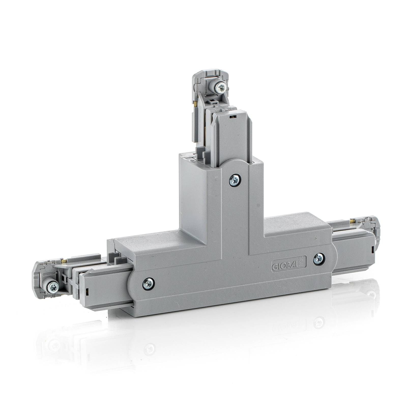 T-connector voor 3-fase stroomrail Noa met voedingsoptie, beschermingsgeleider binnenin links