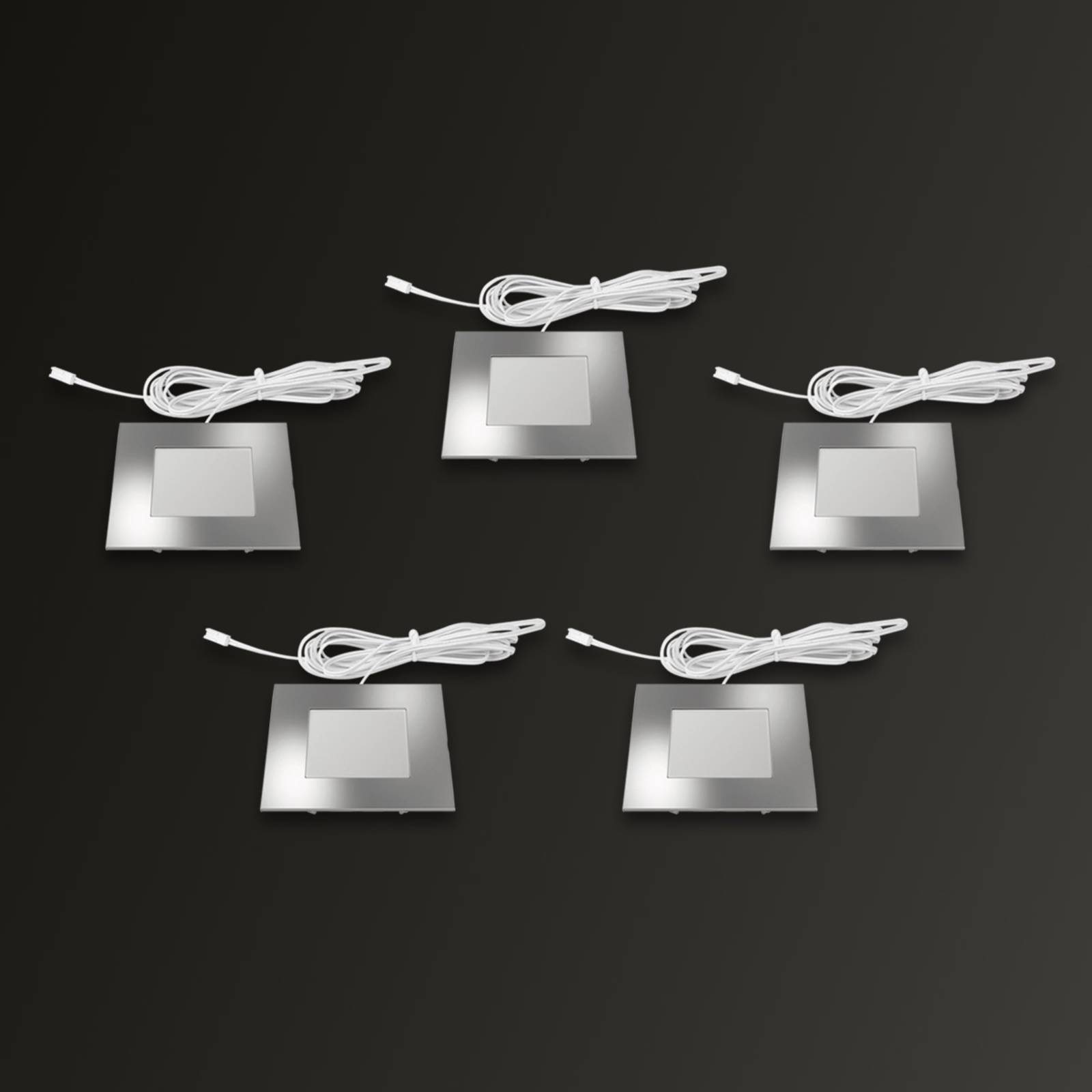 Elegante inbouwarmatuur FQ 68 LEDDeze inbouwarmatuur in een set van 5 biedt een aantrekkelijk design in combinatie met een goede materiaalkeuze. Bovendien is de gebruikte technologie state-of-the-art en voegt een modern facet toe aan de inbouwarmatuur. Het ontwerp van de inbouwarmatuurHet ontwerp is tijdloos en elegant. De basisvorm van het armatuur is een rechthoek, die wordt aangevuld door het zilveren frame rond de witte afdekking van de LED-lichtbron. Het frame geeft de inbouwarmatuur een zeer hoogwaardige uitstraling. Met eenvoudige ontwerpmiddelen is een tijdloos elegante armatuur gecreëerd. De technologie van de lampEfficiënte LED’s met een kleurtemperatuur van 3.000 Kelvin worden gebruikt. Het armatuur is ook beschermd tegen stof en spatwater volgens de IP44-norm. Opmerking: Inbouwmontage in 16 mm panelen, gebruik afstandhouders van min. 50 mm voor isolatie.