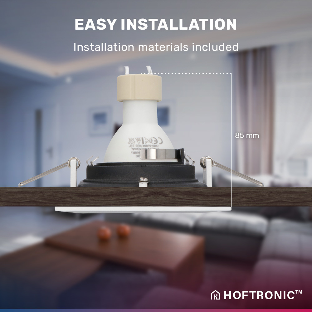 De Durham set wordt doorgaans bezorgd met kwalitatieve GU10 lichtbronnen van HOFTRONIC. De lichtbron in de inbouwspot is verwisselbaar. Dit heeft als grote winst dat je bij een defect aan de lichtbron, alleen de GU10 spot hoeft te diversifiëren en niet de hele inbouwspot. Ook kun je hierdoor de lichtkleur en lichtsterkte van de inbouwspot zelf aanpassen.