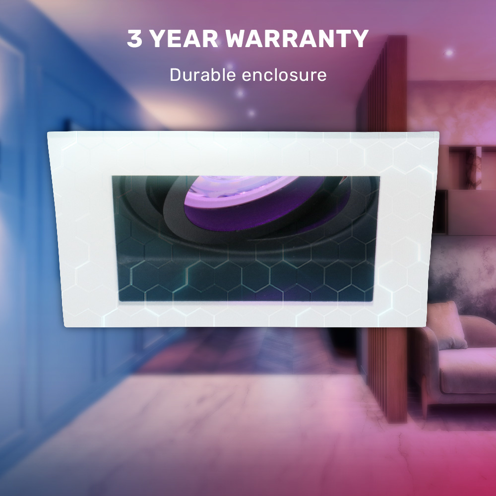 Doordat de slimme inbouwspotjes van Durham een 5.5W RGBWW GU10 LED spot bevatten, heb je uit meer dan 16.5 miljoen allerlei kleuren de beslissing. Dit doe je door een intuïtief kleurenwiel op je telefoon. Naast de grote beschikbaarheid aan kleuren is het met deze spotjes mede soms om uiteenlopende wittinten in te stellen. Of je nu sfeer wil brengen met warm wit licht of je mogelijkheid4 wil concentreren met daglicht wit; het kan allemaal. Van ambiance veranderen was nog nooit zo moeiteloos.