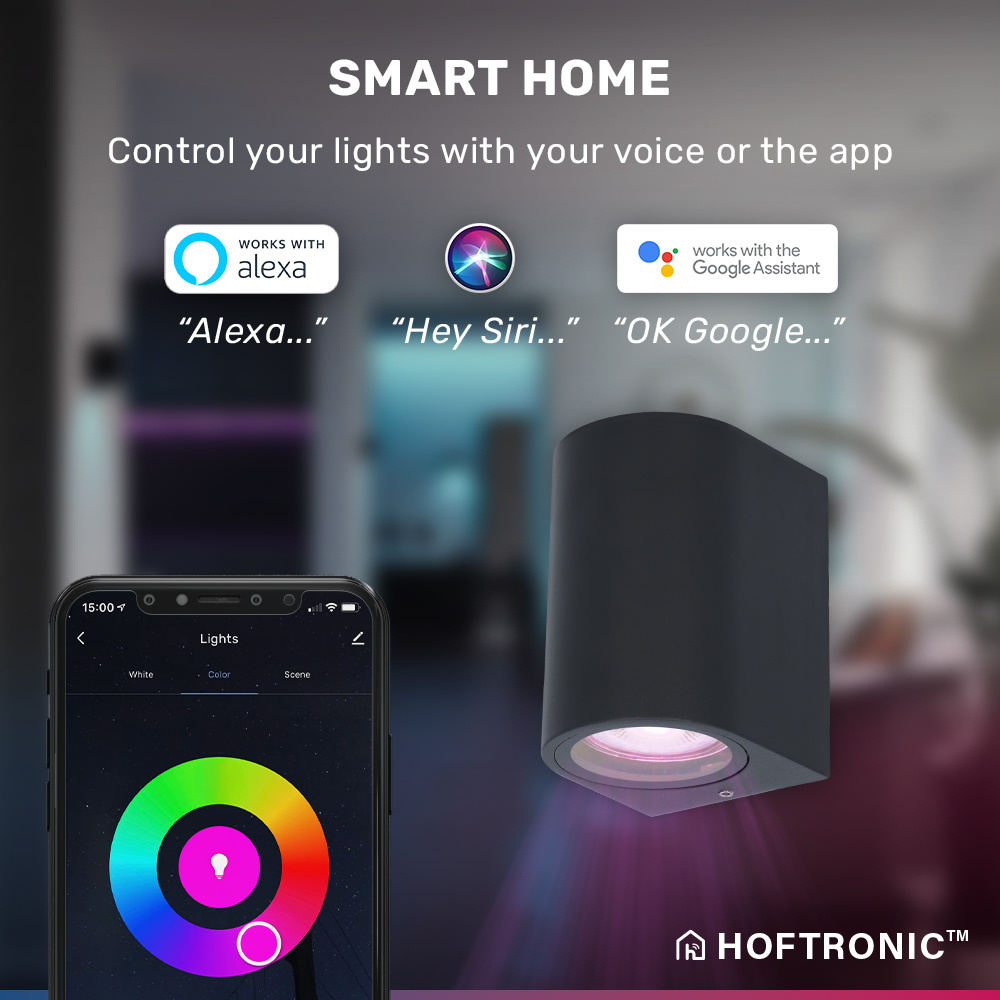 Koppel de smart Alvin wandlamp aan de voor niets Hoftronic Smart app en je krijgt oprijlaan tot tientallen smart functies. Zo haal je het optimale uit je smart verlichting. Een kleine greep uit deze smart functies zijn: