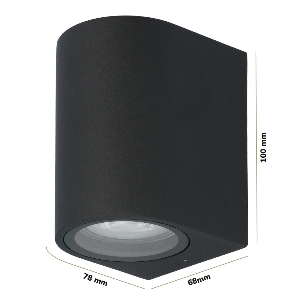 Ben je opzoek naar een moderne buitenverlichting die met zijn actuele uitstraling uitmuntend bij jouw wand of schutting past? Dan is deze wandlamp accuraat wat je zoekt! Door zijn afgeronde constructie is deze buitenlamp een echte eye-catcher. Niet alleen het ontwerp van deze buitenverlichting is luxueus, de functionaliteit is eveneens optimaal. De buitenlamp beschikt over een GU10 fitting opdat je elke GU10 fitting naar wens kunt vertrekken. Bestel direct de gewenste GU10 LED spot mee. Hierdoor verwissel je héél eenvoudig een spotje mocht er een spotje defect gaan.