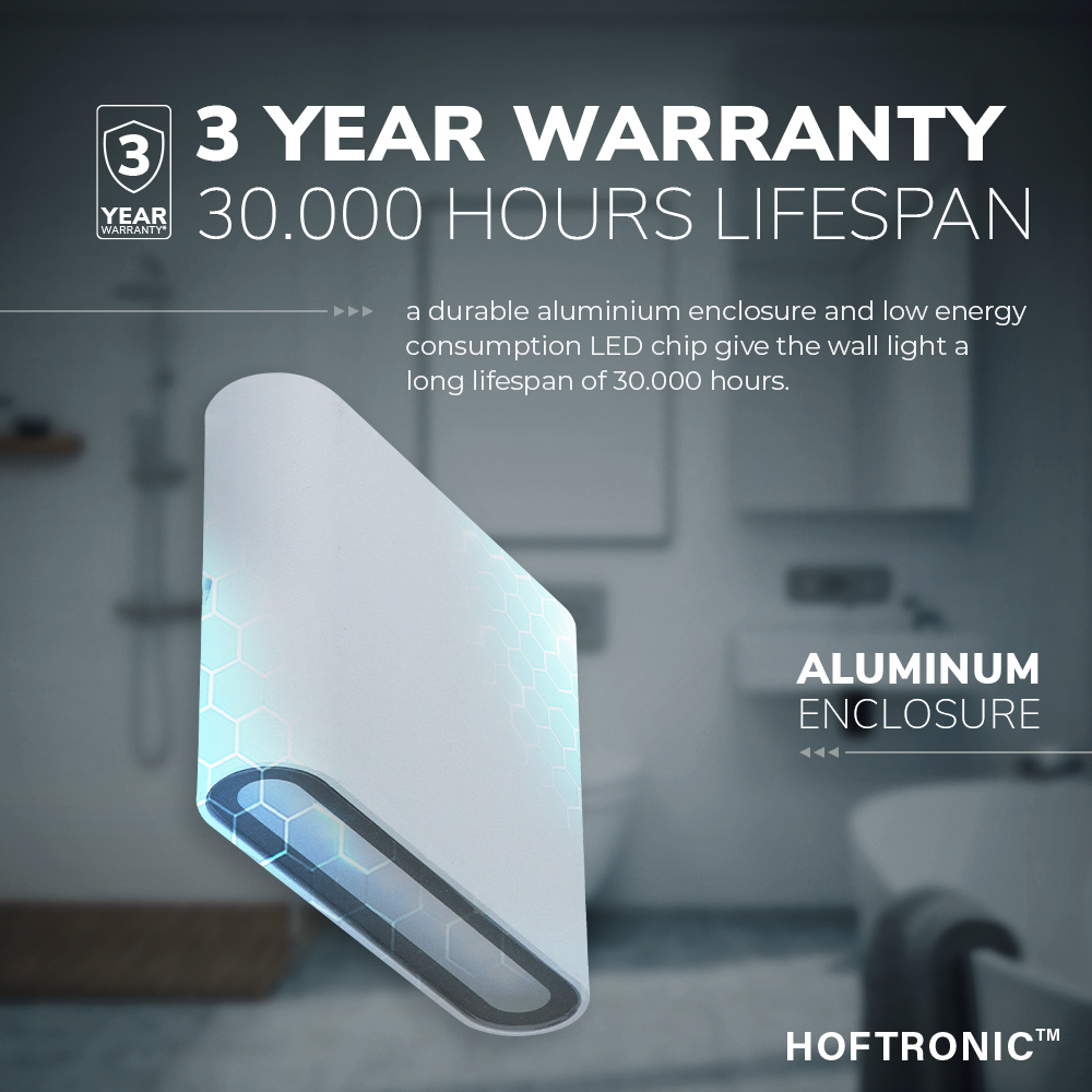 Deze zware kwaliteit Dallas wandlamp is een kwaliteitsproduct van het merk HOFTRONIC. HOFTRONIC is zowel fabrikant als verkoper van LED verlichting. Hierdoor profiteer jij altijd van de mooiste prijs en voorwaarden. Zo ontvang je op deze wandlamp maar liefst 3 jaar garantie. Mocht er in deze 3 jaar iets defect gaan, dan staat er een team getalenteerde productspecialisten voor je klaar. Dat is de securiteit van HOFTRONIC.