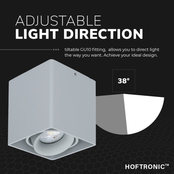 De Esto wordt normaal geleverd met een GU10 spots. Deze is gemakkelijk te diversifiëren en dat heeft twee voordelen. Ten eerste kun je na aanschaf altijd nog switchen van lichttemperatuur. Zo maak je van een nuttige opbouwspot eenvoudig sfeerverlichting en andersom. Ten tweede wordt de levensduur van de lamp verlengd, omdat je geen fonkelnieuwe opbouwspot hoeft aan te schaffen zodra de lichtbron het begeven heeft.