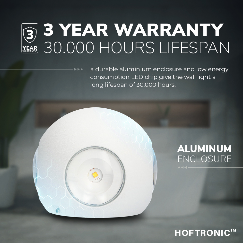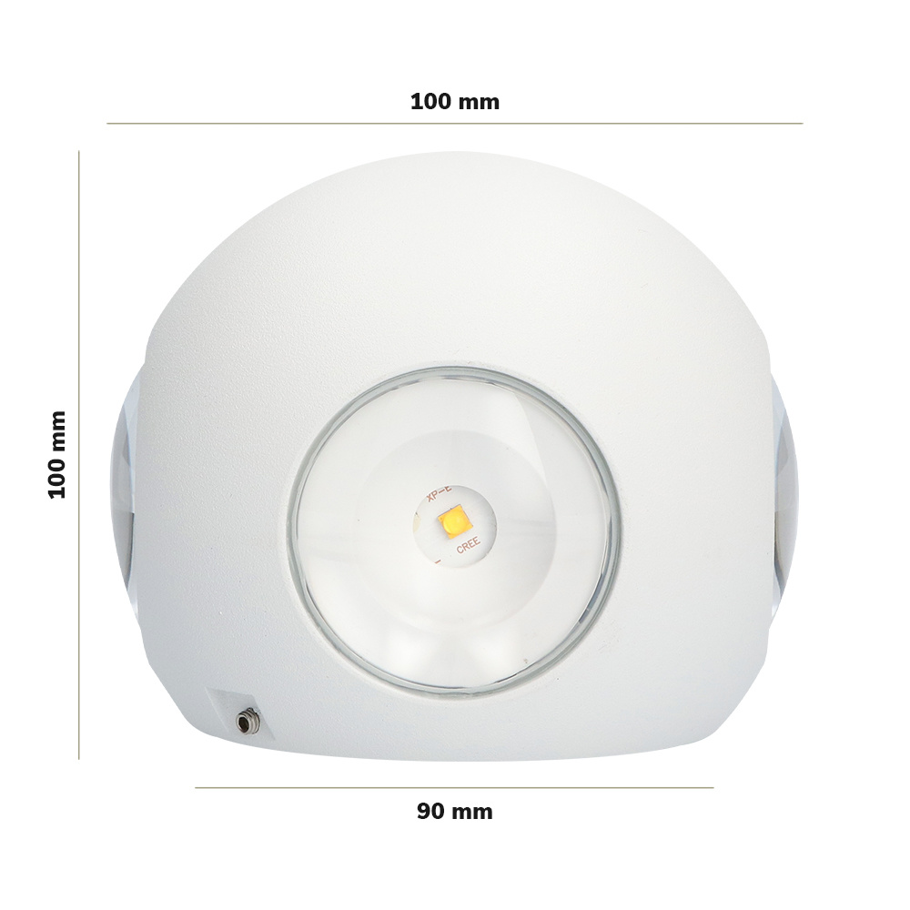 Deze luxe design LED wandlamp heeft 4 lampen wat een zeldzaam mooi effect geeft. Deze LED wandlamp is uitgevoerd in onderhoudsarm aluminium welke voorzien is van een coating laag hiermee is de lamp bestand tegen de zwaarste weersinvloeden en is deze LED wandlamp tegelijk uitgevoerd met een IP54 beschermingsklasse, hetgeen betekend dat deze LED wandlamp bruikbaar is voor buitengebruik en ook voor vochtige binnenruimtes onder andere je badkamer.