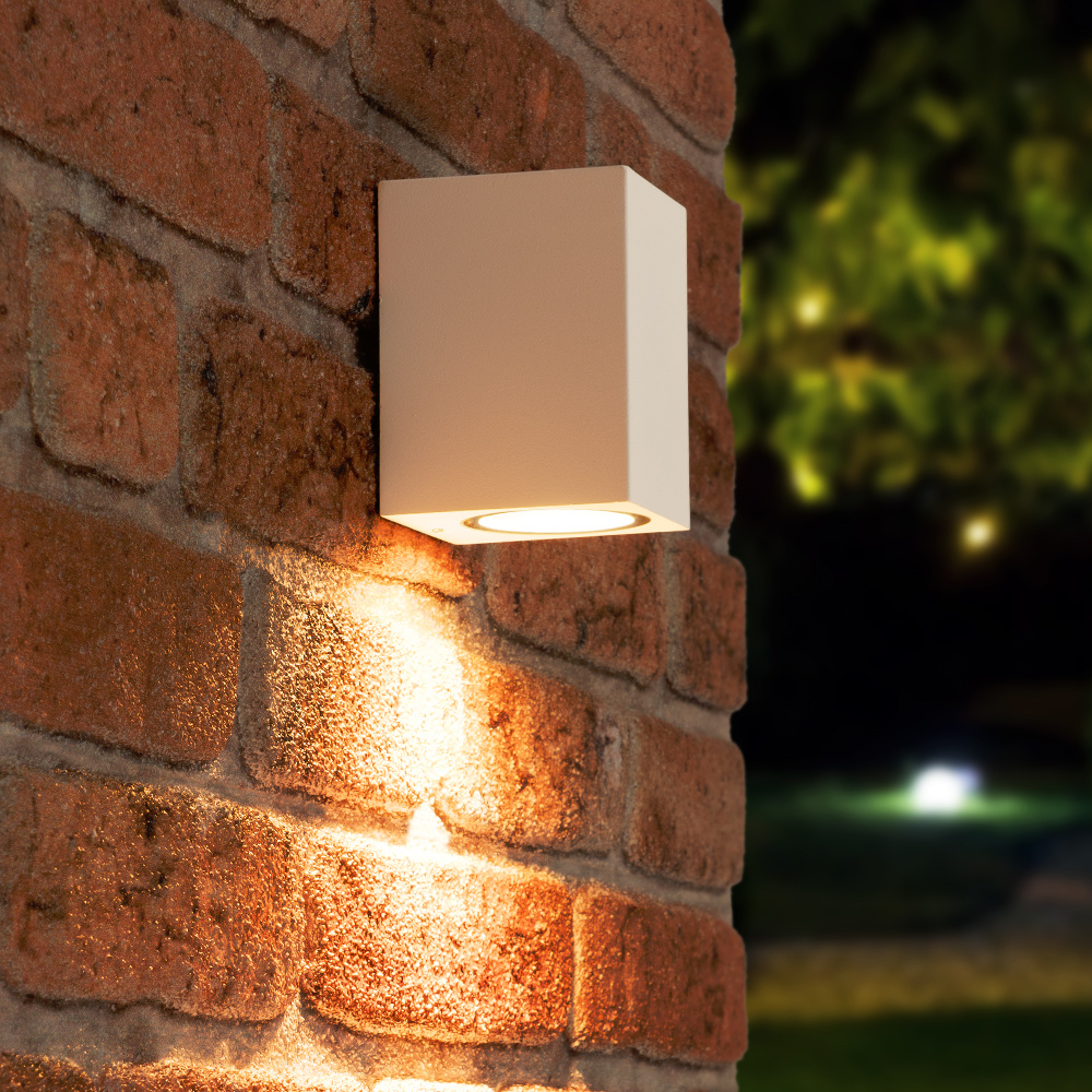 Ben je op zoek naar een actuele witte wandlamp met GU10 fitting? Dan is deze wandlamp precies wat je zoekt! Door zijn gespannen vorm is deze buitenverlichting een echte eye-catcher. Niet alleen het model van deze buitenverlichting is comfort maar de lamp is ook nog eens enorm handzaam. Dankzij de meegeleverde installatiematerialen is het installeren van deze wandlamp een fluitje van een cent! De buitenverlichting is uitgevoerd met een GU10 fitting zodat je naar wens een LED spot met een GU10 fitting kunt ruimtes. Het voordeel hiervan is mocht een spotje ooit defect raken dan is dit héél handzaam te verwisselen voor een gloednieuwe spot.