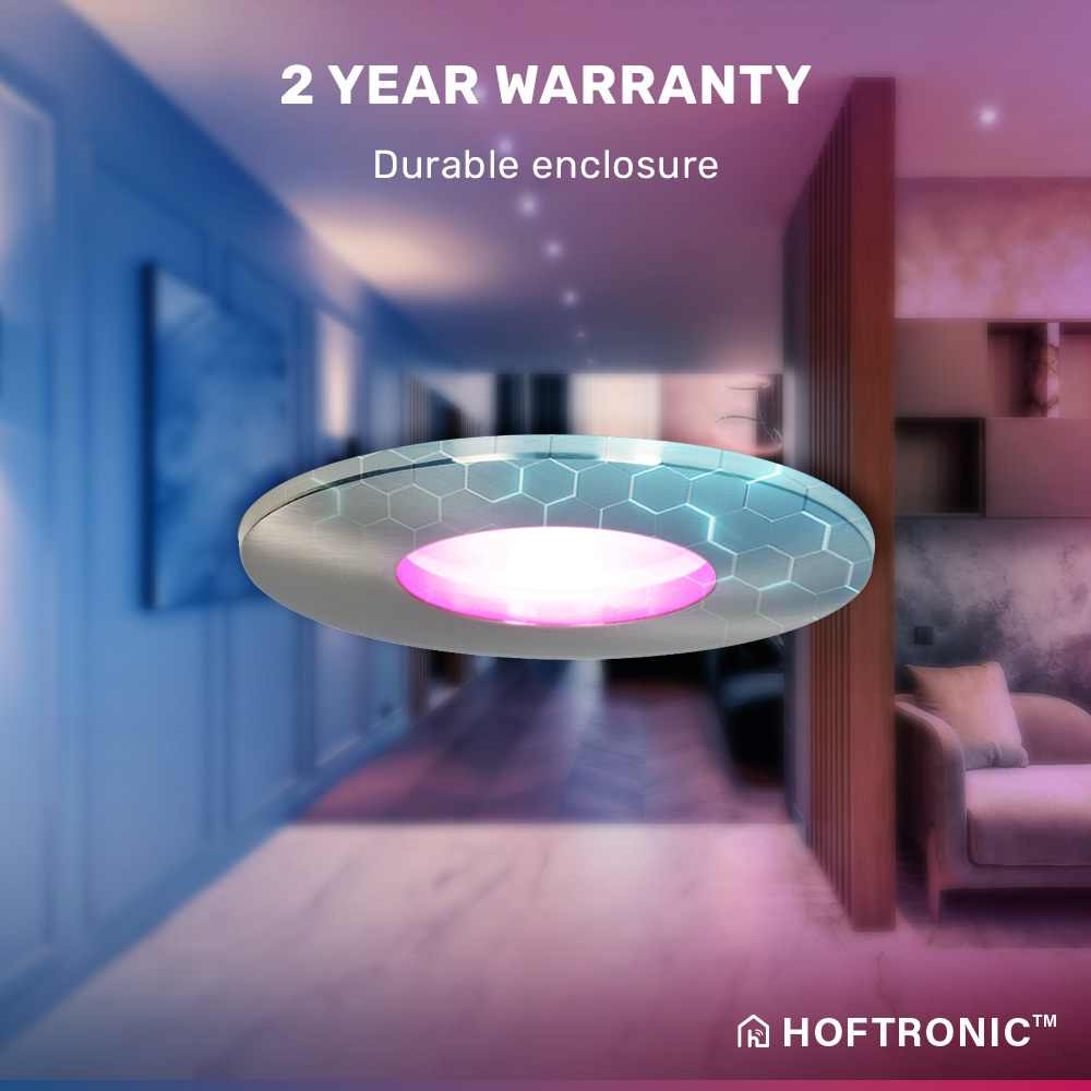 Met deze slimme WiFi+Bluetooth inbouwspot maak je iedere ruimte met één druk op je smartphone gemoedelijk. De inbouwspots zijn voorzien van een IP44 beschermingsklasse waardoor ze geen last hebben van vocht en stof. Het armatuur is ontwikkeld van onderhoudsvrij aluminium en gefinaliseerd met een vochtbestendige en UV-bestendige AKZO Nobel poedercoating. De inbouwspots zijn geschikt voor de badkamer, slaapkamer, keuken en zelfs buiten. Met een levensduur van 50.000 branduren, beschikt je gemiddeld wel 20 jaar van deze inbouwspots.