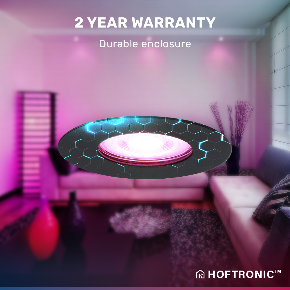 Deze set van 6 slimme inbouwspots is juist voor thuis en buiten. Dit komt door de hoge IP65 beschermingsklasse, het armatuur uit onderhoudsvrij ijzer en de vochtbestendige en UV-bestendige AKZO-Nobel poedercoating. Deze combinatie zorgt ervoor dat stof niet in de inbouwspots kan komen en de coating niet bladdert wanneer deze lange tijd in een zeer vochtige ruimte hangt.