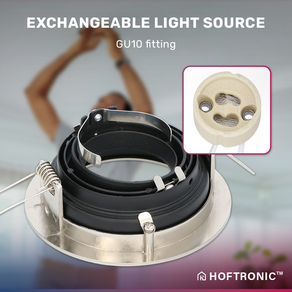De Mesa LED inbouwspot is kantelbaar waardoor de lichtbundel naar specifieke plekken gericht kan worden. Een voordeel van deze LED spot is dat de GU10 spot welke in het armatuur zit variëren kan worden. Het kopen van een geheel kersverse inbouwspot is dus niet nodig. Je kunt genoeglijk de GU10 spot uit het armatuur halen en vervangen voor een andere GU10 spot. Het aansluiten van de LED spot is heel moeiteloos door de meegeleverde GU10 fitting waarmee je de spot op het lichtnet van 230 Volt aansluit.