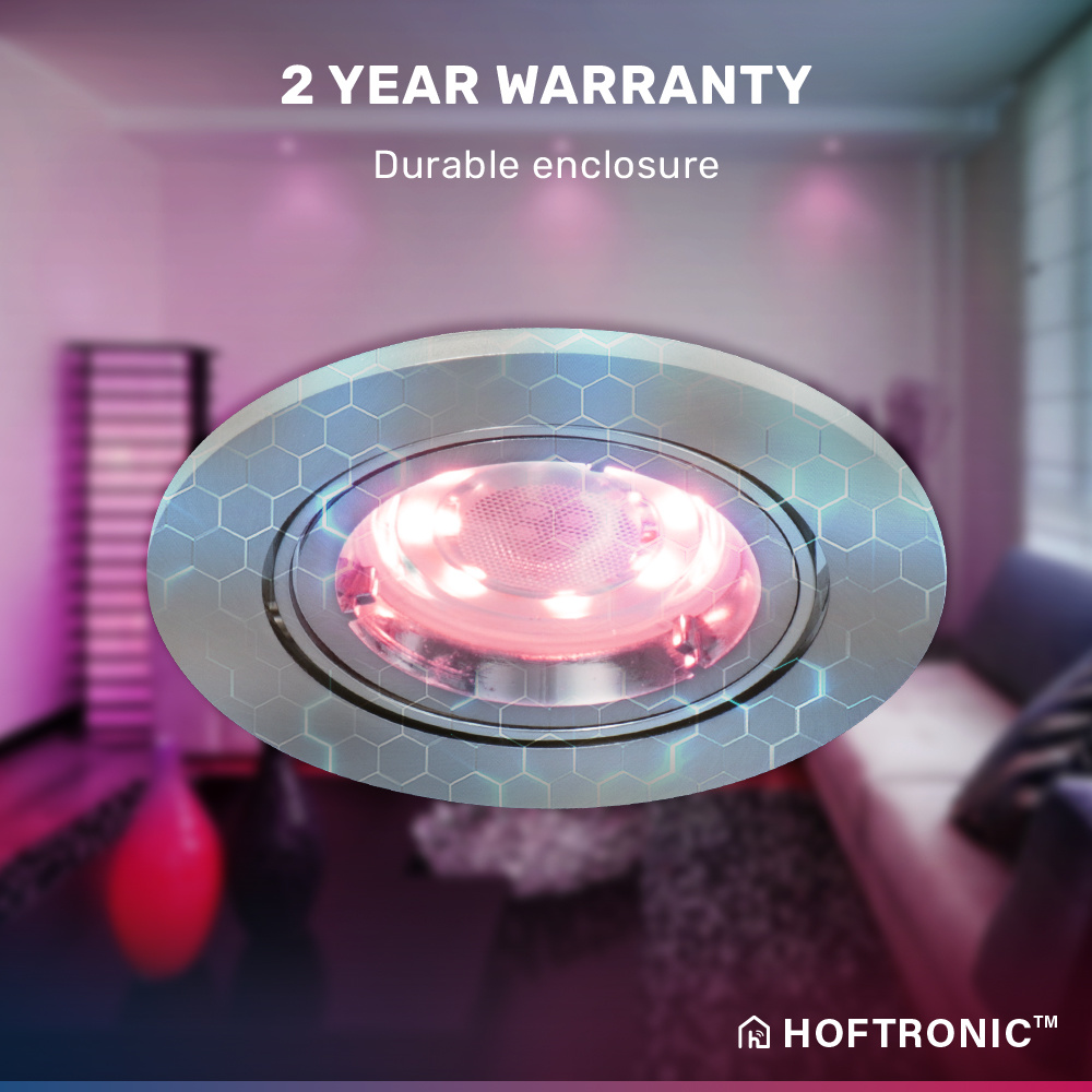 De Lublin smart inbouwspot is een smart product van Hoftronic Smart. Dit wil zeggen dat het apparaat met de Hoftronic Smart App bedient kan worden. De app is comfortabel kosteloos te downloaden via de Google Play store wanneer je een Android smartphone hebt, of via de Apple Store wanneer je een IOS smartphone hebt. De Lublin slimme inbouwspot wordt gekoppeld aan de app via je WIFI netwerk. Zorg ervoor dat je thuis 2 meter van je router zit om het slimme apparaat te kunnen koppelen.