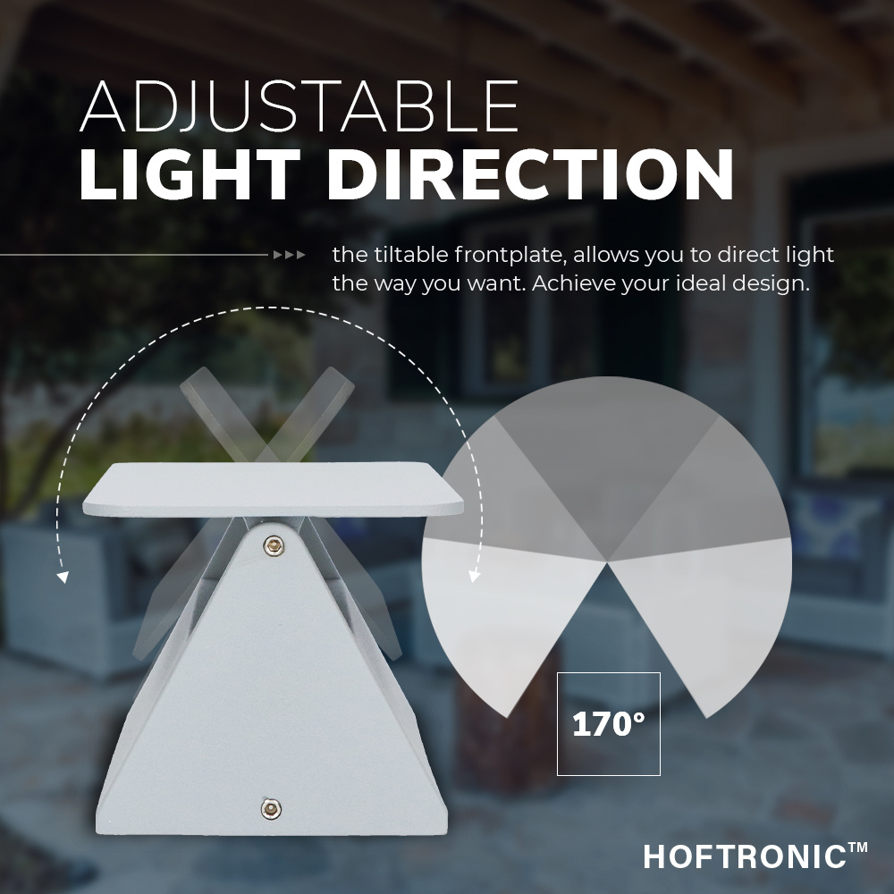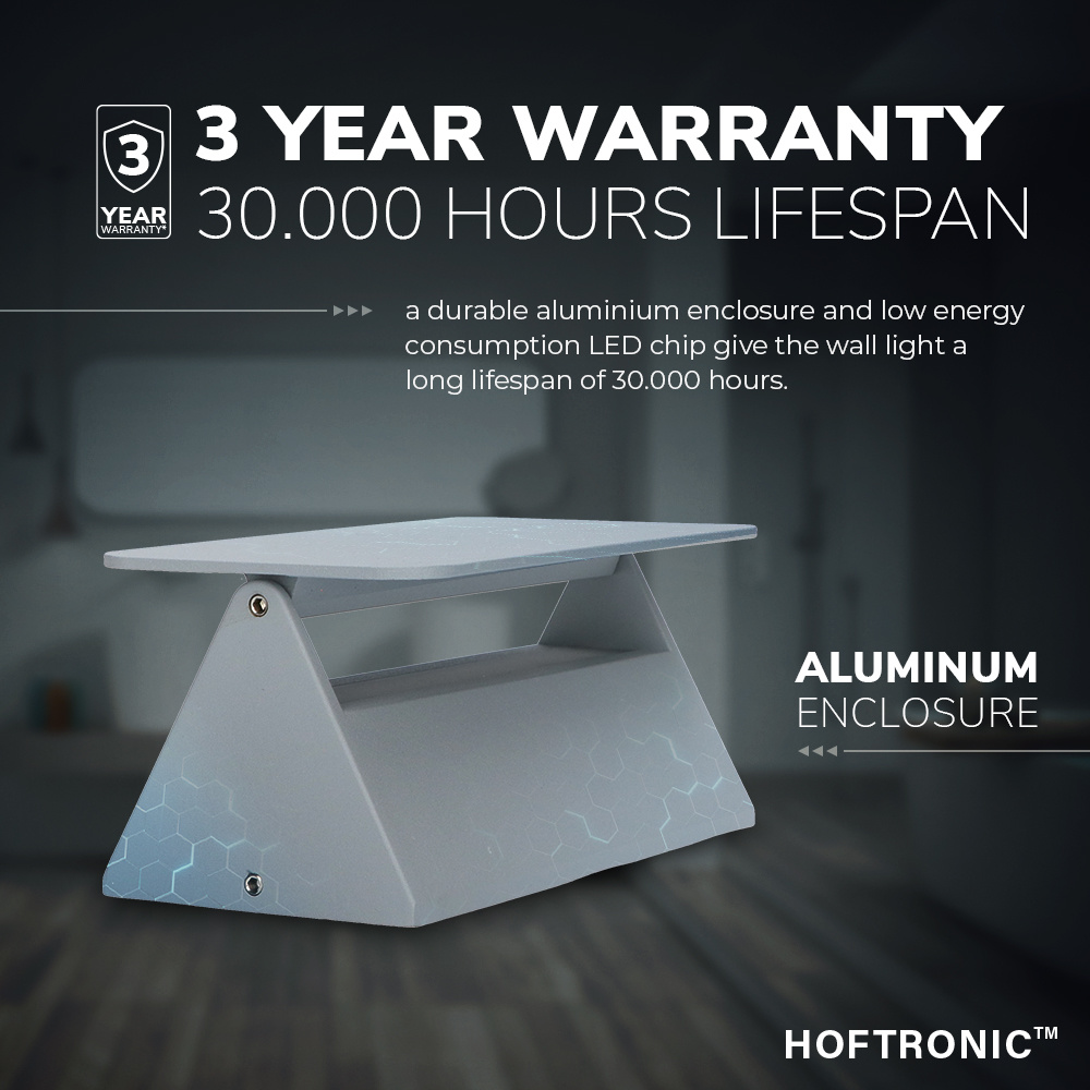 Hofronic Toledo kantelbare LED wandlamp – 3000K warm wit – 6 Watt – Up & down light – IP54 voor binnen en buiten – Moderne muurlamp – Tweezijdig – Grijs