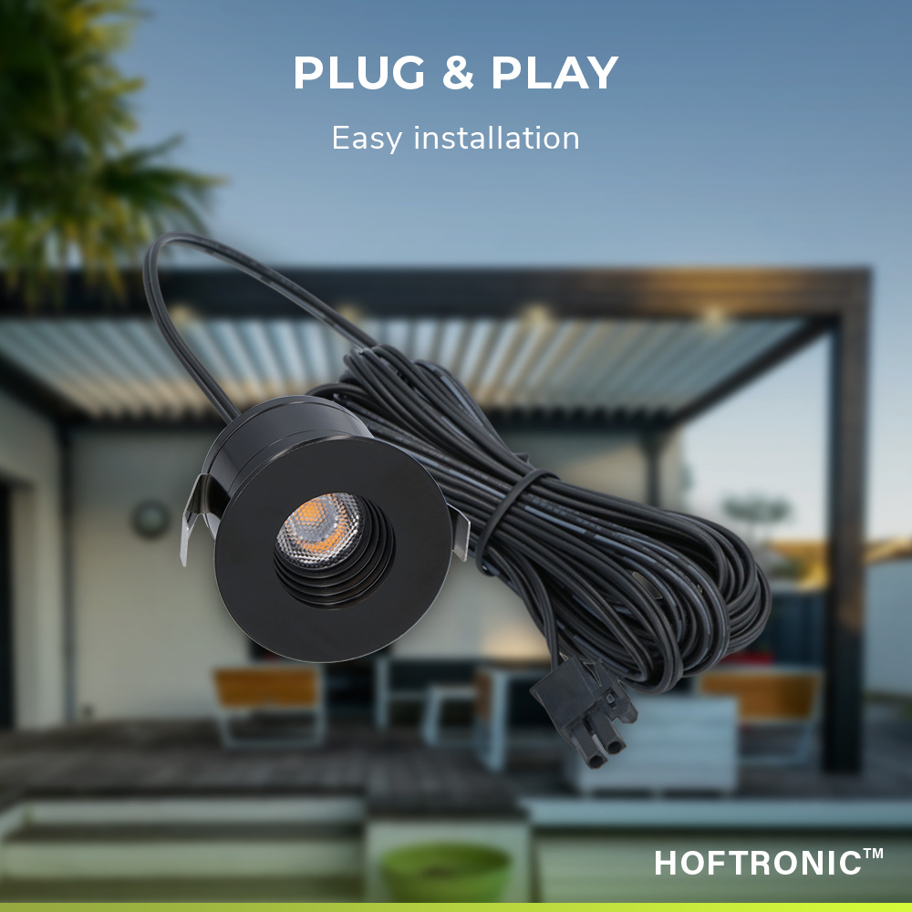 Deze mini inbouwspot set wordt compleet bezorgd waardoor de set rechtstreeks geïnstalleerd kan worden. De meegeleverde jumperbox is voorzien van 12 aansluitingen waarop de inbouwspots comfortabel kunnen worden ingestoken, dit maakt het altijd soms om de bestaande set simpelweg uit te breiden. De jumperbox zit standaard al bevestigd aan de transformator, sluit dus enkel de trafo aan op de 230V netstroom en prik de spots hierop in. De spotjes kunnen met de 2-polige stekkers worden ingestoken en probleemloos op de gewenste plek bevestigd worden, dankzij de klemmen die aanwezig zijn op de spotjes.
