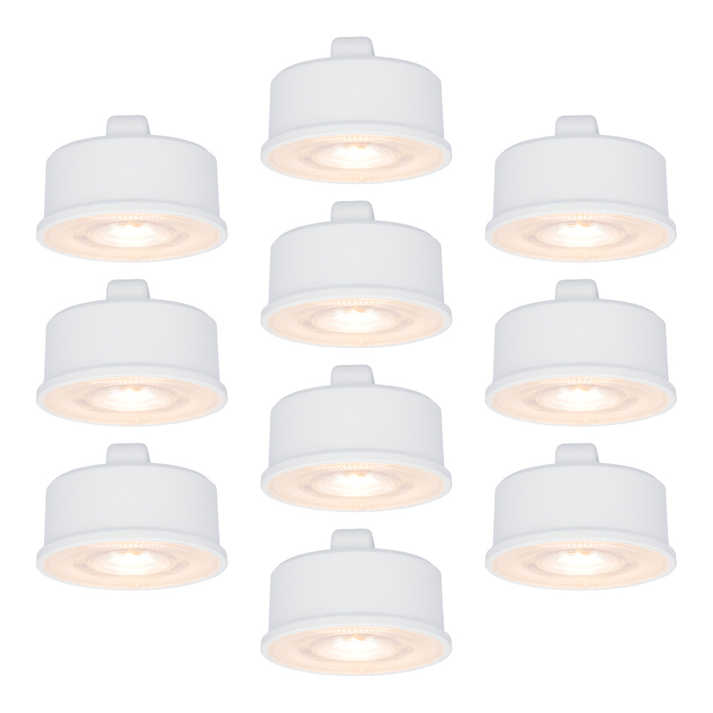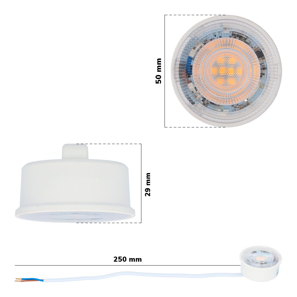 Deze LED module kun je eenvoudig toepassen als vervanger voor een reguliere GU10 lichtbron. Door de universele afmeting is deze module goed voor bijna iedere GU10 armatuur op de markt. DE LED module is een lichtbron met lage inbouwdiepte, deze is ideaal als vervanger van een traditionele GU10 lamp. In de meeste GU10 armaturen voor inbouwspots zit er ook een GU10 houder in het armatuur, hierin kan je de LED module met gemak in plaatsen behalve behoeften. Deze LED module schuif je dus in het houdertje op zijn plek en vervolgens sluit je de 2 aders uit de LED module aan op het netstroom.