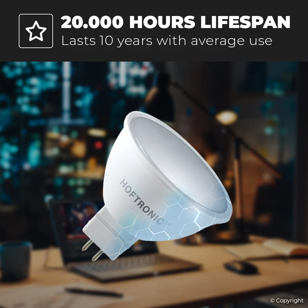 Deze GU5.3 LED lamp is van het merk HOFTRONIC. HOFTRONIC is zowel fabrikant als verkoper van LED verlichting. Hierdoor profiteer je van de scherpste prijs, de hoogste klasse en de mooiste garantievoorwaarden. Op deze GU5.3 LED lamp ontvang je dan mede 2 jaar garantie. Defecten in huis deze 2 jaar worden afgeladen gratis variëren.
