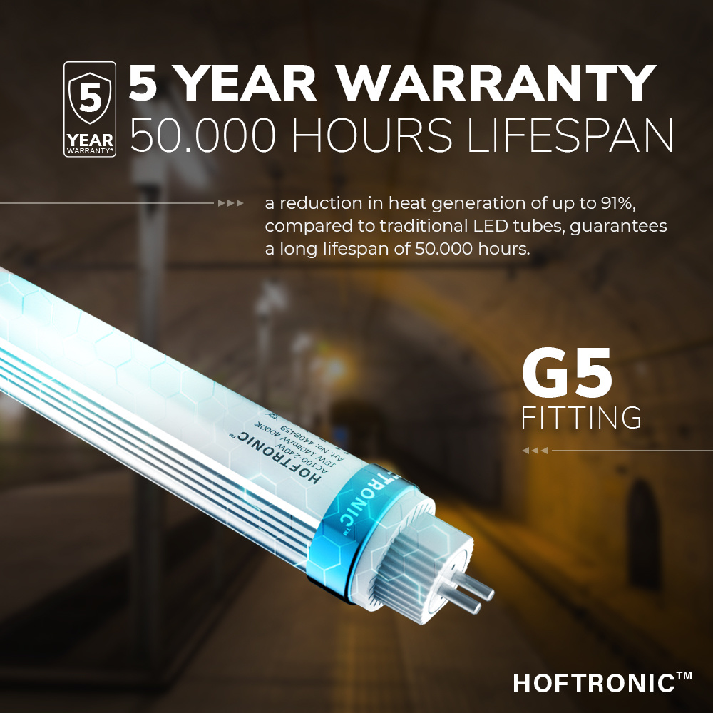 • Handige T5 fitting: Door de handige T5 fitting installeer je de LED buis eenvoudig in elke klassieke TL T5 armatuur. Hierdoor heb je géén gloednieuw TL armatuur meer nodig en bezit je onmiddelijk van de voordelen van de energiezuinige LED buizen