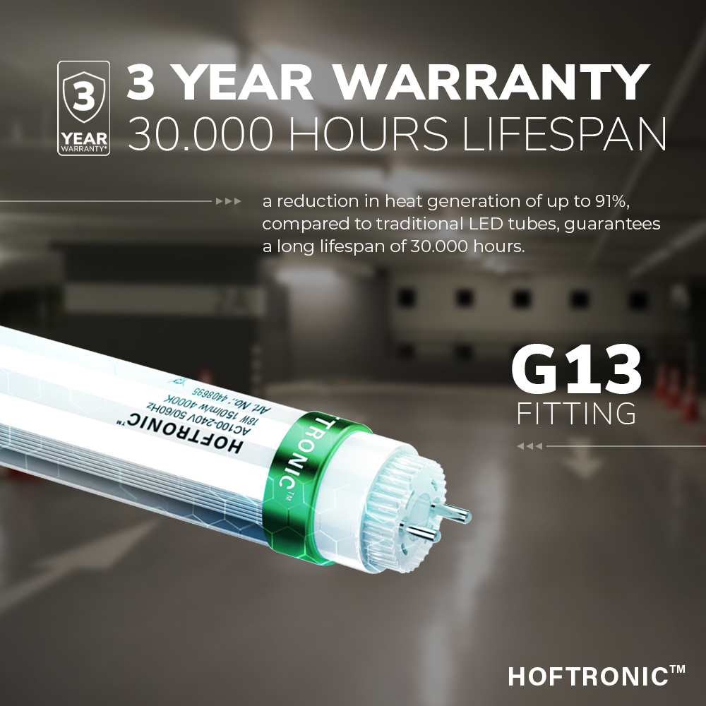 Het verwisselen van je huidige T8 TL buizen was nog nooit zo eenvoudig en daadwerkelijk. Deze LED TL buis kan onmiddelijk in een traditioneel T8 TL armatuur worden bevestigd met elektronisch voorschakelapparaat. Door de hoge efficiëntie van 150 lumen per Watt verbruikt deze VSA LED buis slechts 18 Watt en produceert hiermee 2700 lumen, hierdoor vervangt de LED buis je huidige tl buis van 70 Watt. Een besparing van 75%. Door toepassing van hoge niveau componenten heeft de LED buis een levensduur van 30.000 branduren (12 jaar).