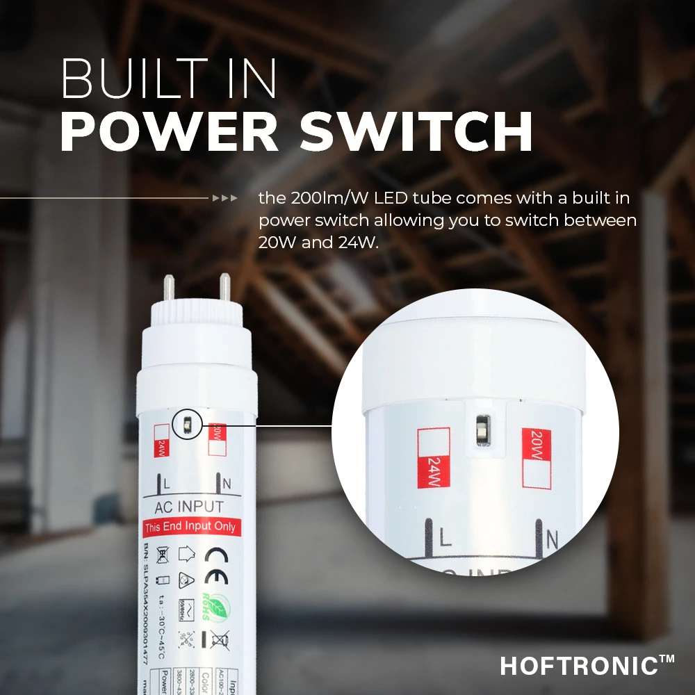 Op zoek naar een echt zuinige LED T8 TL buis? Dan kies je voor deze 200 lumen per Watt buis. Zelfs met de aangescherpte 2021 energieregels bezit deze T8 LED buis nog steeds over een energielabel A. De LED buis kun je instellen in twee wattages, immers: 20 Watt en 24 Watt. Deze zuinige LED buis schijnt een lichtkleur van 4000K wat de authentieke 840 lichtkleur direct vervangt. Door de hoge powerfactor van 0.92 kun je heel voldoende buizen op één groep aansluiten. Dit is vooral relevant bij grotere projecten.