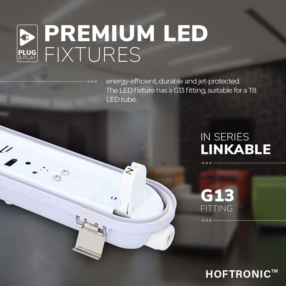 HOFTRONIC 25x LED T8 TL armatuur 120 cm IP65 waterdicht 18W 2340lm 130lm/W 3000K – warm wit – koppelbaar