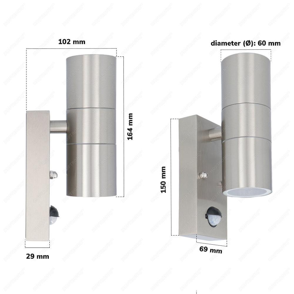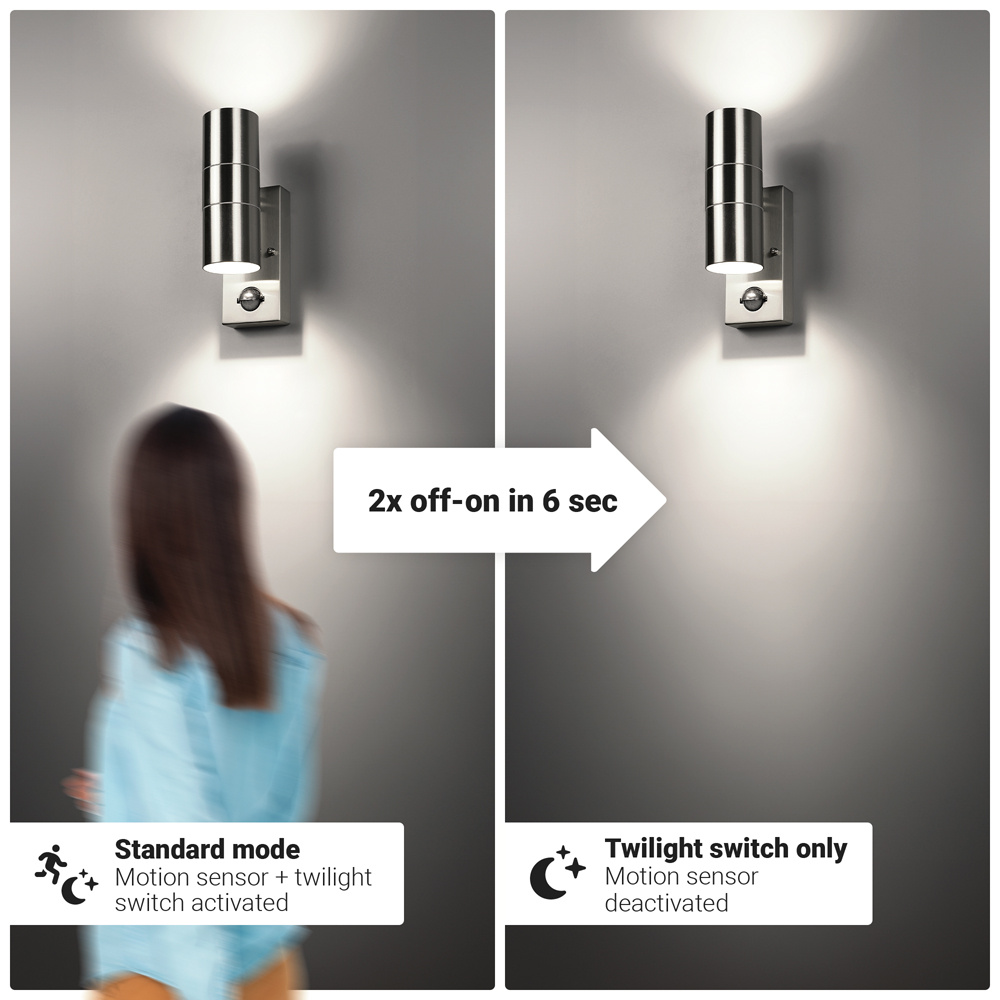 Set van 3 duurzame LED Wandlamp Jasmin in RVS – Een trendy en dimbare Up and Down wandspot met bewegingssensor en schemerschakelaar inclusief 4000K GU10 spot