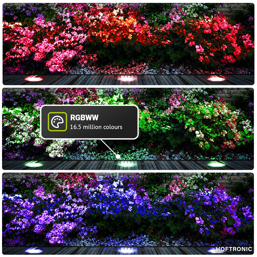 Koppel de grondspot aan de voor niets Hoftronic Smart app en je krijgt oprijlaan tot tientallen smart functies. Zo haal je het absolute uit je smart verlichting. Een kleine greep uit deze smart functies zijn:
