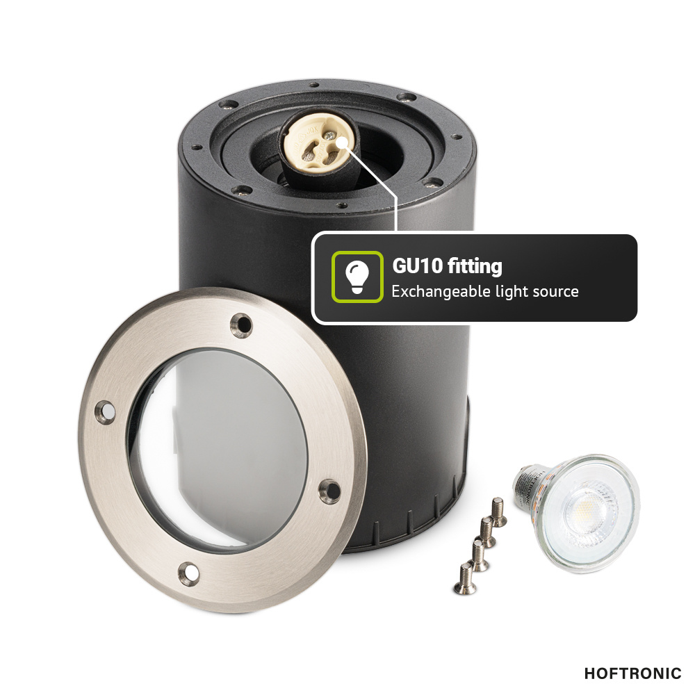 • Eenvoudige montage: Het installeren van de grondspots is heel gemakkelijk. Deze kunnen direct op het 230V lichtnet worden aangesloten door de interne kabelverbinder. Zo heb je geen extra kabelverbinders meer nodig.
