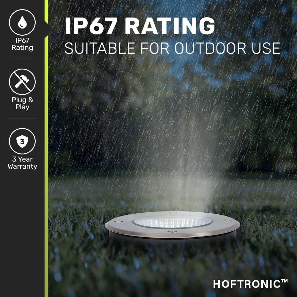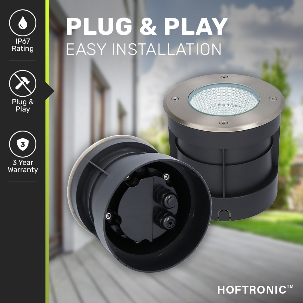 Deze grondspots schijnen een zeer gemoedelijk neutraal wit licht. Ideaal voor het uitlichten van een boom of voor het gezellig van licht voorzien van je oprit, gevel, tuin en terras. Door het RVS uiterlijk en zijn ronde vorm behoort de grondspot in elke tuin.