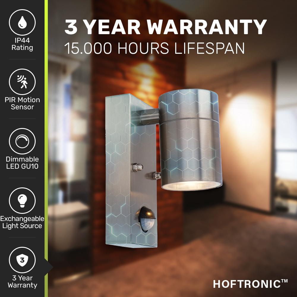 De Mason wandlamp met sensor is van het hoogwaardige merk HOFTRONIC. HOFTRONIC is zowel fabrikant als verkoper van LED verlichting. Hierdoor profiteer je van de scherpste koopprijs, hoogste niveau en meest gewaardeerde garantievoorwaarden. Op deze Mason wandlamp ontvang je dan ook 3 jaar waarborg. Op het meegeleverde GU10 2700K spotje zit evengoed 2 jaar garantie.
