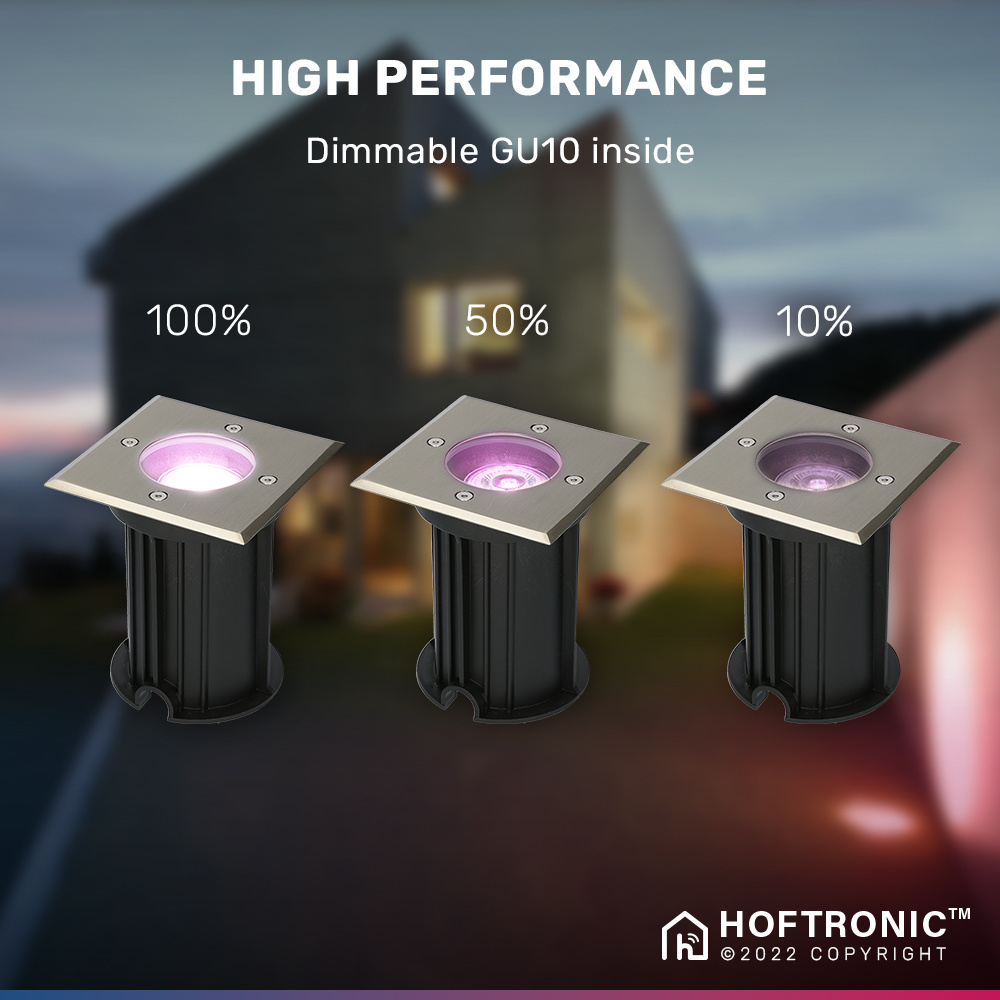 Ben je van plan om je tuin te voorzien van fraaie sfeerverlichting? Gebruik dan deze mooie smart grondspots. Deze vierkante grondspots zijn geproduceerd van kwaliteitsmateriaal aluminium, RVS en helder veiligheidsglas. Het laatste dat je wil als je in de tuin aan het borrelen bent, is in het donkerkleurig zitten. Met sfeerverlichting creëer je niet alleen licht maar breng je tevens sfeer. Doordat deze grondspots smart zijn en meer dan 16 miljoen kleuren creëren kunnen, ben je altijd zeker dat je een gave sfeer hebt voor elke gelegenheid. Door de IP67 beschermingsgraad zijn deze bodemspots waterdicht en betrouwbaar tegen de strengste weersinvloeden (niet fijn voor onder water!).