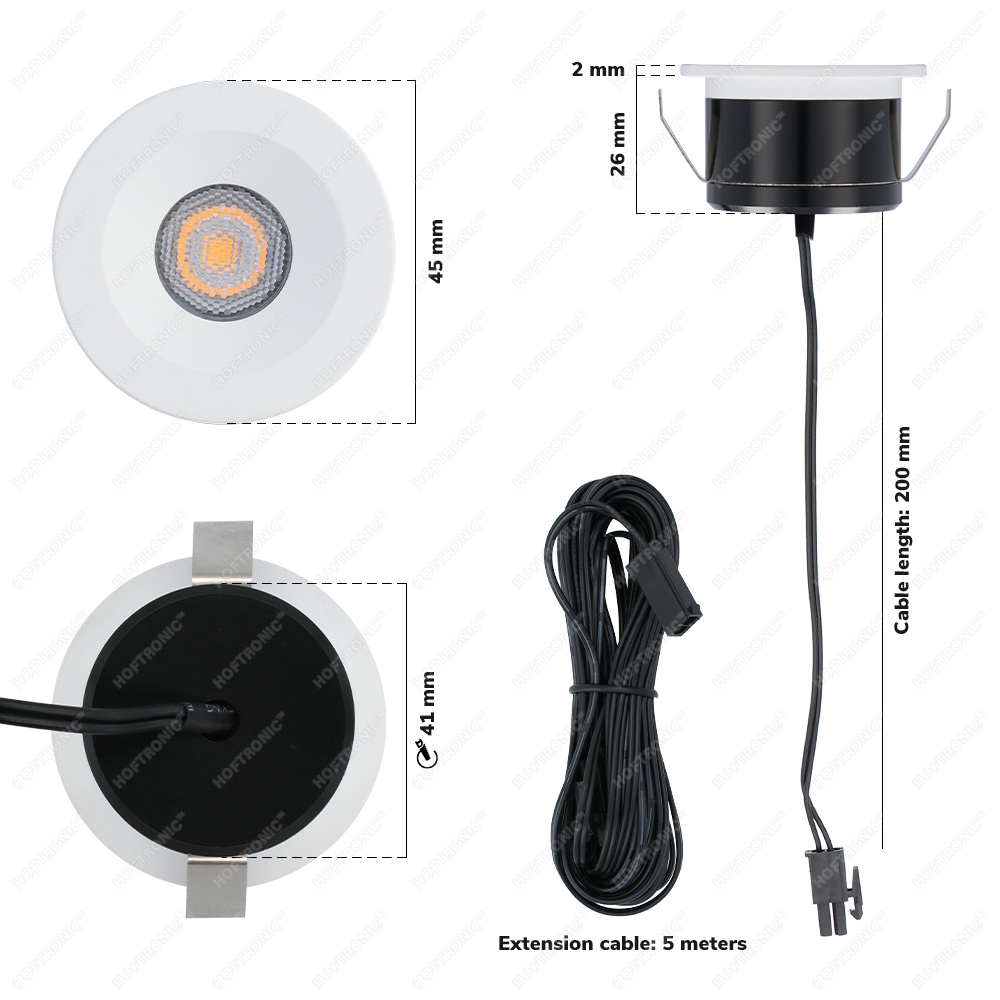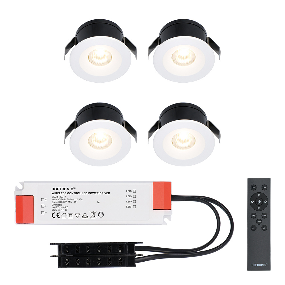 De Hoftronic Cadiz dimbare inbouwspot zijn traploos dimbaar, wat betekent dat je in een vloeiende overgang van 100% naar 0% kunt dimmen, en gedraaid. De kleurtemperatuur is 2700K, wat staat voor warm wit licht. Er wordt een afstandsbediening bij overgedragen. Zit je gemoedelijk in je luie stoel op de veranda, of lig je languit in bad en denk je: de verlichting staat toch iets te fel? Met de afstandsbediening dim je de verlichting ogenblikkelijk, en hoef je dus niet op te staan. Ideaal.