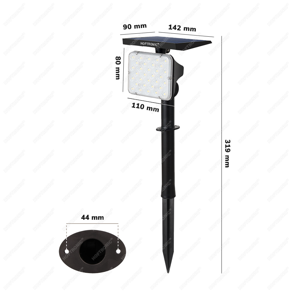 De LED Solar Tuinspot Eagle is een echte krachtpatser. Tenminste wanneer jij dit wilt. Deze solar tuinspot kan immers ingesteld worden tot 200 lumen. Daarmee verlicht je met een gemak een haag of struik. Ook heeft de Eagle een functie voor sfeervoller licht. Dit is lichtstand twee. Hierin schijnt de solar tuinspot met een lichtsterkte van 100 lumen. Dit is bekwaam voor sfeerverlichting en het uitlichten van kleinere planten en struiken. Op de lichtsterkte van 200 lumen schijnt de Eagle tot 6 uur en op de lichtsterkte van 100 lumen maar liefst 12 uur.