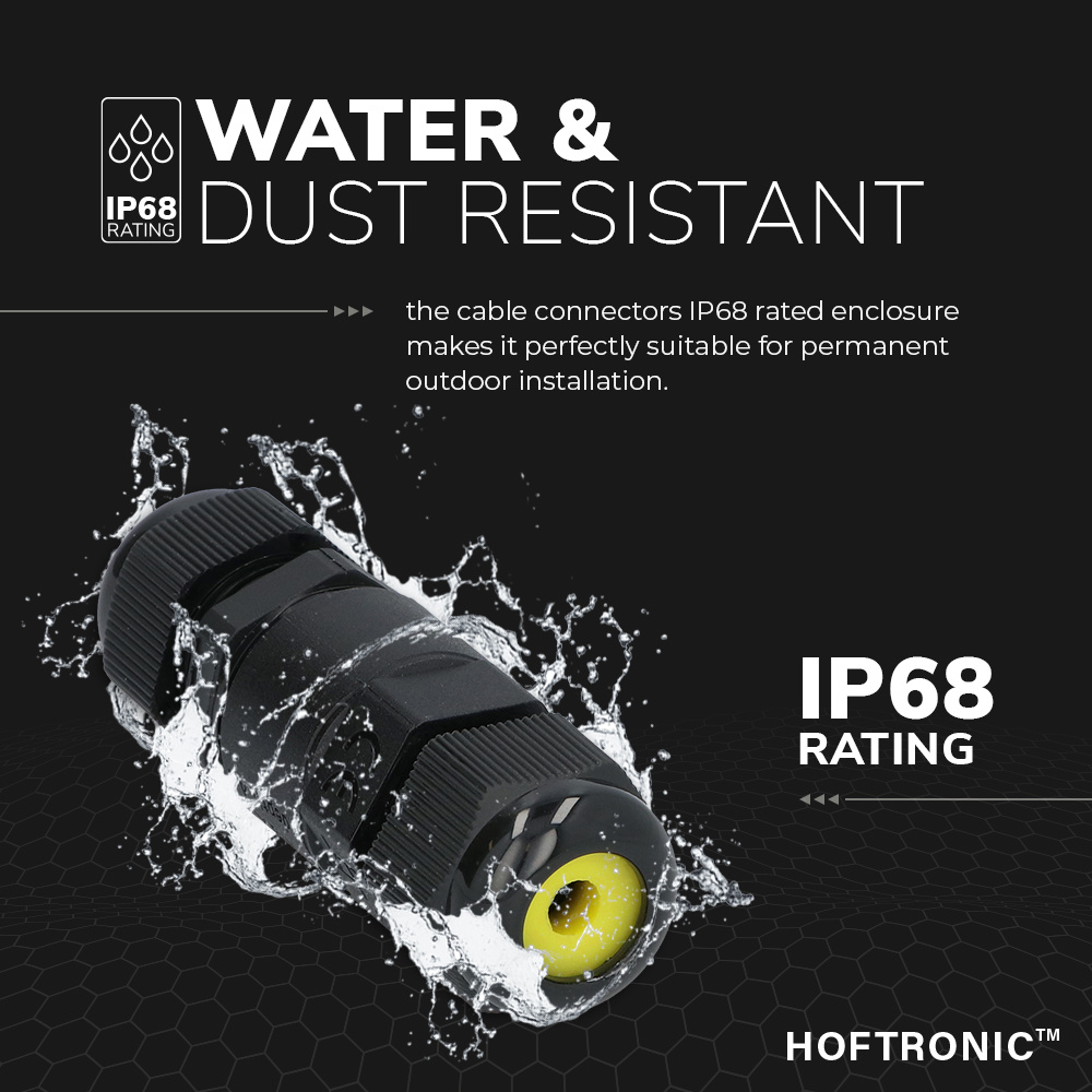 Indien je kabels wilt verbinden voor jouw tuin en of buitenverlichting biedt deze waterdichte kabelverbinder de ideale oplossing. Geschikt voor een drie-aderige kabel (neutraal, fase, aarding) met een kabeldikte van 4 tot 12 mm.