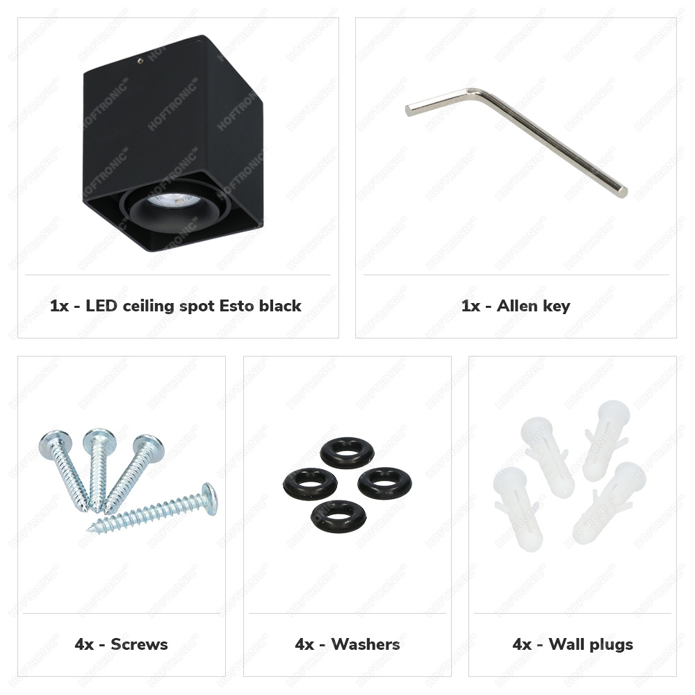 De Esto structuur plafondspots is in hoogwaardig aluminium afgewerkt en wordt standaard geleverd met afdekringen en GU10 spot met lichtkleur 2700K. Je hebt drie jaar garantie op het armatuur.