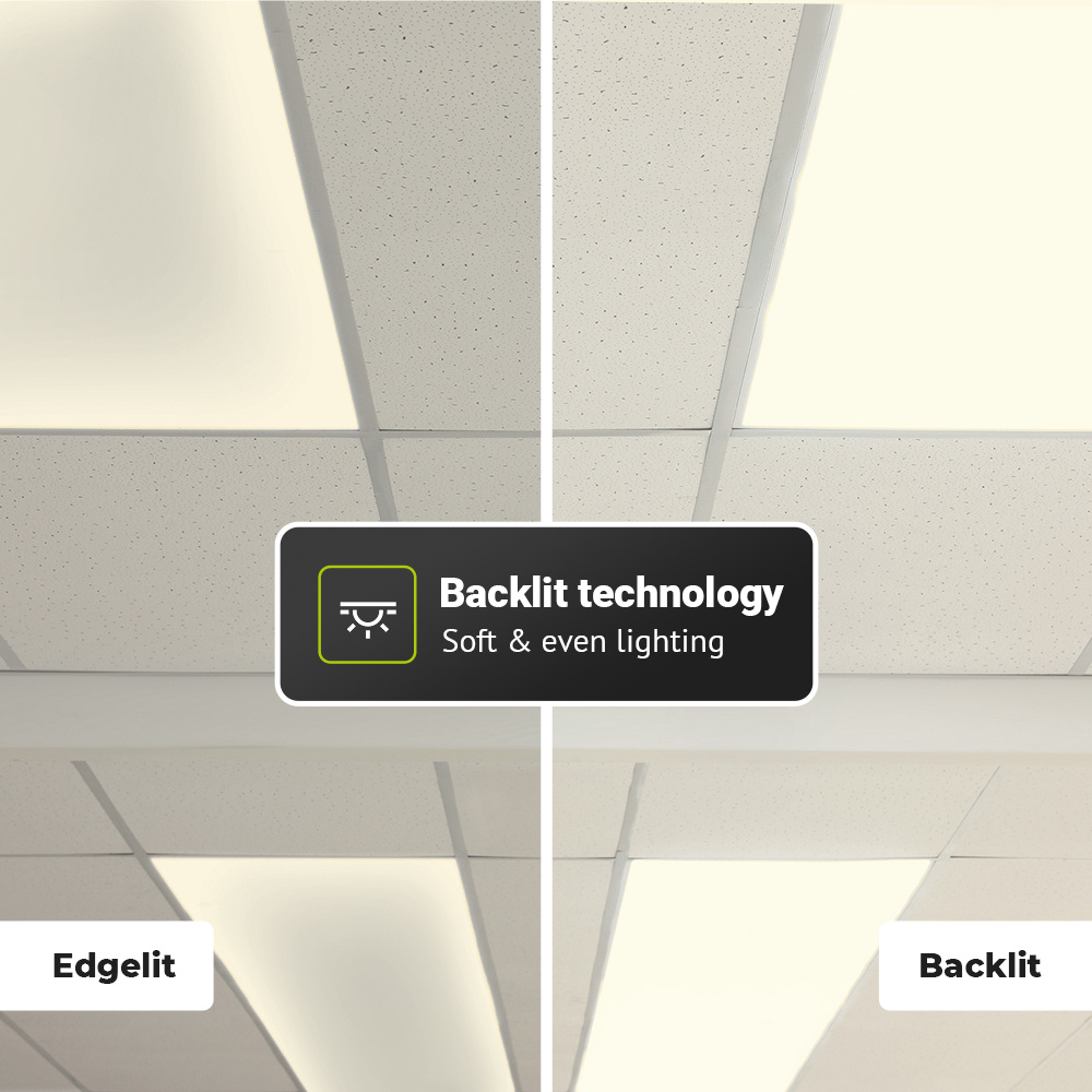 Het LED paneel is volkomen flikkervrij. Dit maakt de verlichting geschikt voor kantoren, werkplaatsen en magazijnen. Het LED paneel verbruikt slechts 36 Watt en creëert hiermee 4860 lumen aan licht met een 3000K warm witte lichtkleur. Een efficiëntie van 135 Lumen per Watt. Dit LED paneel heeft een levensduur van 50.000 branduren – bij gemiddeld gebruik komt dit neer op minimaal 20 jaar. Op dit LED paneel ontvang je 5 jaar waarborg.