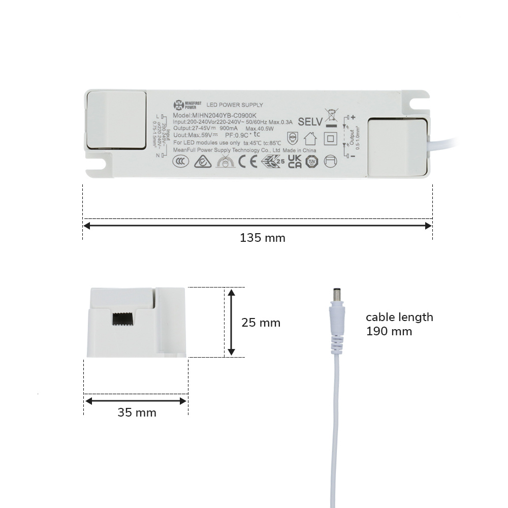 | Uitgaingsspanning | 28-40V DC, 900mA |