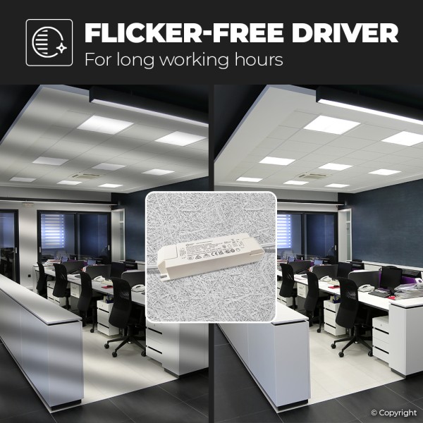 Door de geoptimaliseerde transformator die wordt geleverd bij dit LED paneel, functioneert het paneel behalve te gaan flikkeren.