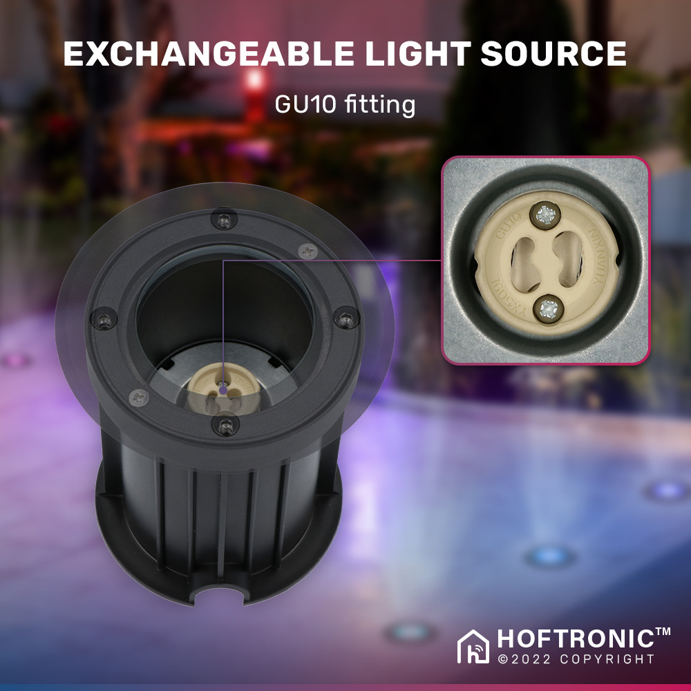 HOFTRONIC 6x Maisy dimbare LED grondspot – Rond – Zwart – RGBWW – 5.5 Watt – WiFi & Bluetooth – IP67 straal waterdicht – 3 jaar garantie