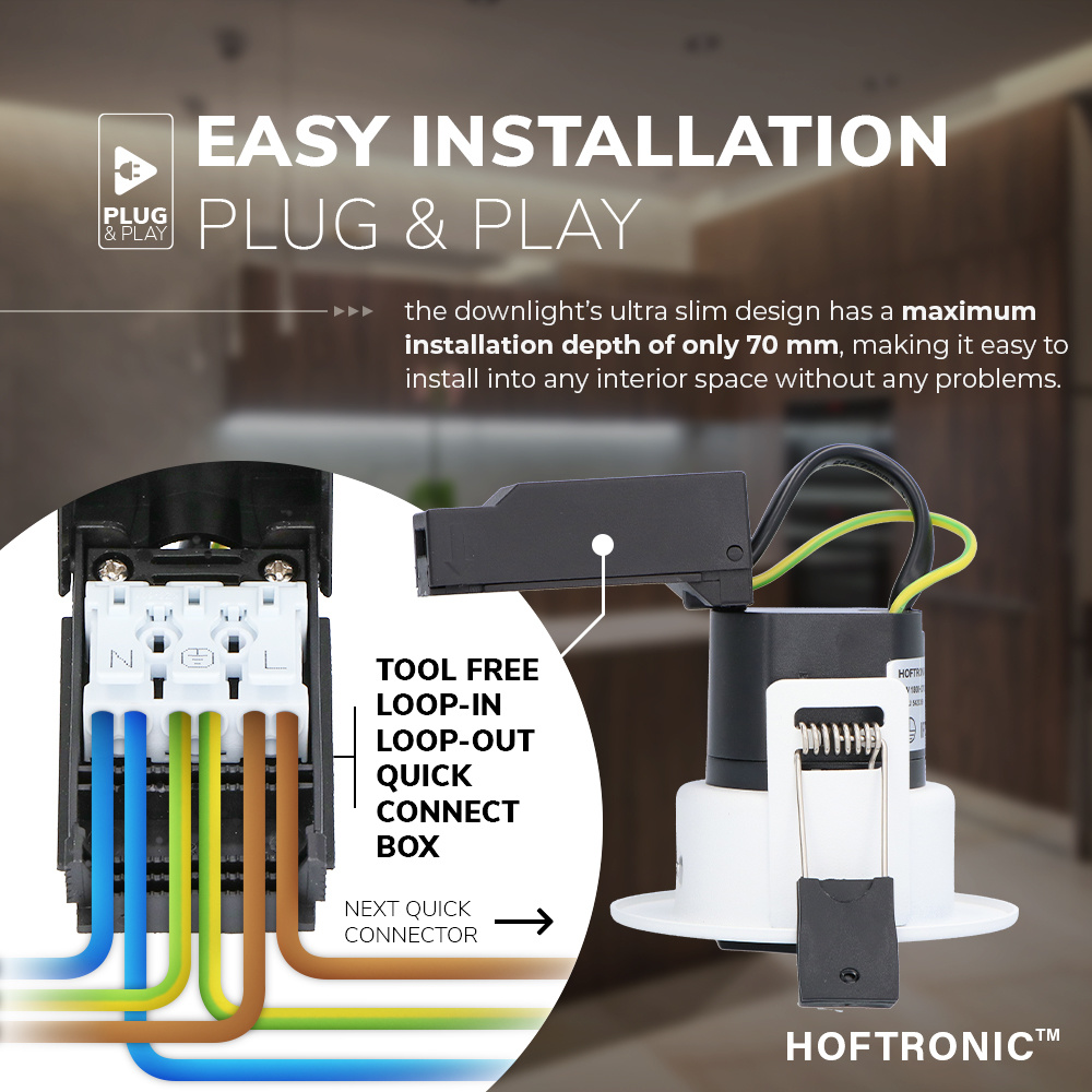 • Lage inbouwdiepte: De LED inbouwspot heeft een inbouwdiepte van 70mm wanneer de driver losgekoppeld wordt van de spot. Wanneer je deze erop laat zitten is de inbouwdiepte 85mm.