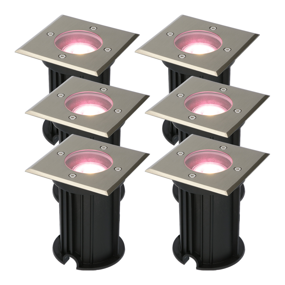 HOFTRONIC 6x Ramsay Smart LED Grondspot – Vierkant – RGBWW – 5 Watt – IP67 straal waterdicht – Grondspots voor buiten – Roestvrij staal – 3 jaar garantie