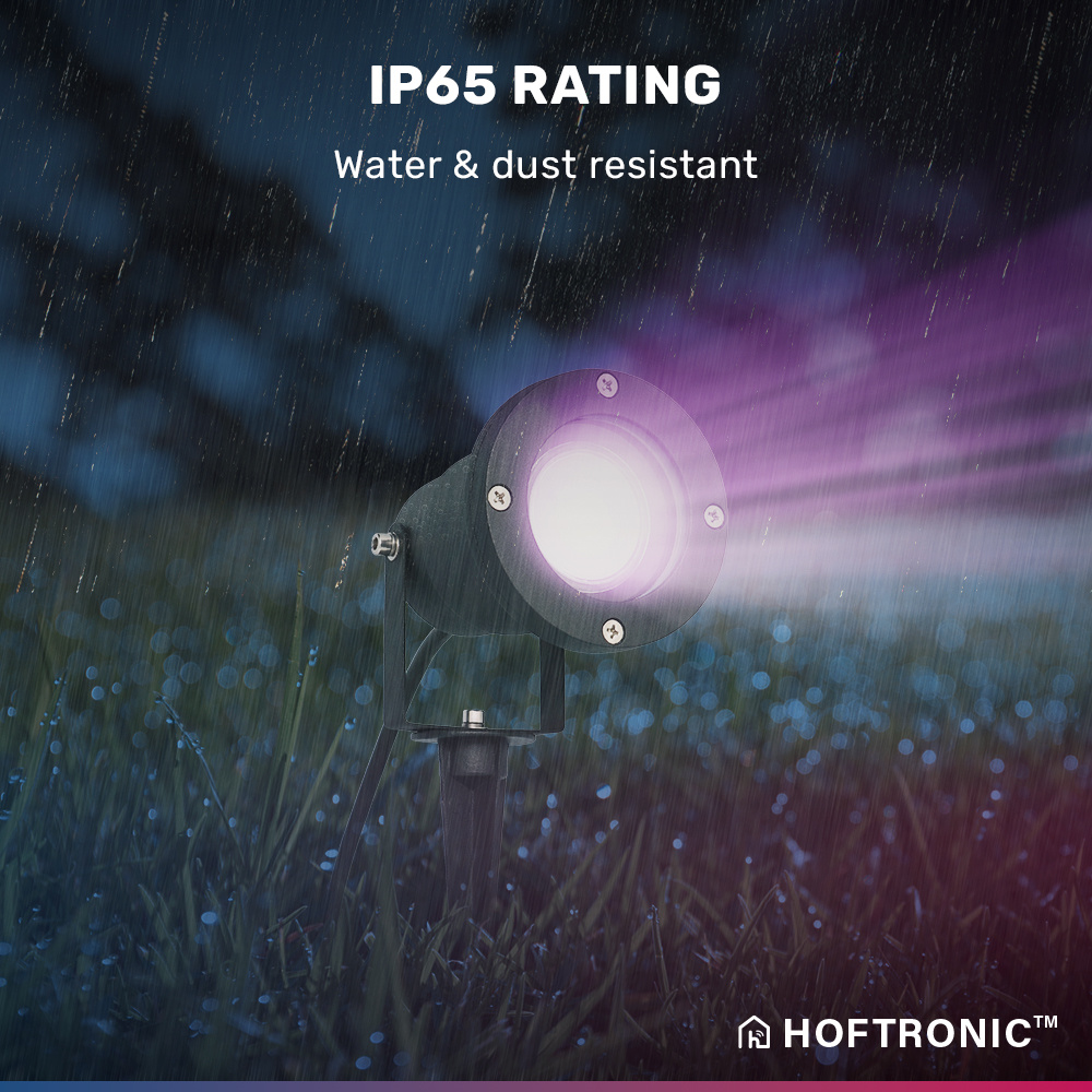 Nu kan je je tuinverlichting bedienen met Amazon Alexa, Google Assistant, voice control en ook via de Hoftronic Smart app. Hierdoor ben je mega flexibel om de verlichting voor elke situatie in te stellen wat betreft helderheid en lichtkleur. Met de smart functies kan je meer dan 16 miljoen lichtkleuren instellen + kleurtemperaturen van 2700K – 6500K, dimmen, aan/uit zetten, een timer op de lamp zetten, scenes en nog meer!