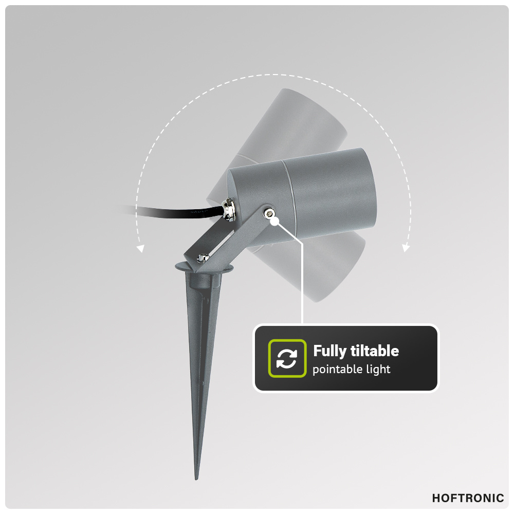 Deze set Spikey tuinspots schijnt een helder neutraal wit licht van 4000 graden kelvin. Deze lichtkleur is uitmuntend voor het uitlichten van bomen, struiken en beelden in de tuin. Verlichte objecten behouden beneden deze lichtkleur namelijk hun natuurlijke kleuren. Hierdoor bezit je zelfs ‘s avonds en ‘s nachts van de comfort bloemen in je tuin.