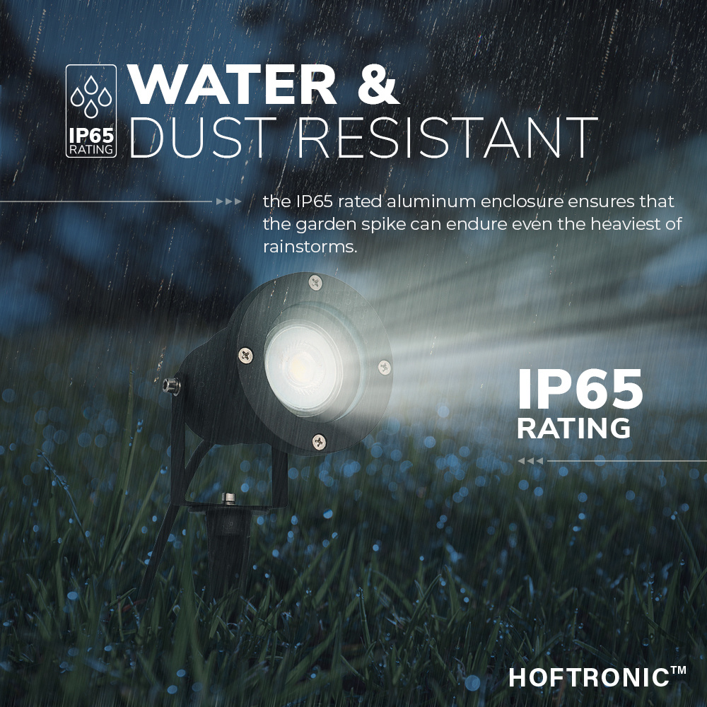 De Sydney prikspot is een LED prikspot fijn voor buitengebruik. Dit komt door de beschermingsgraad van de prikspots. Deze is IP65. Een IP65 beschermingsgraad wil zeggen dat de Sydney prikspot spatwaterdicht is, en gerust in aanraking mag komen met water. Plaats een Sydney prikspot bij je bomen, struiken, de heg of bij de schutting. Dankzij het kantelbare armatuur kun je de richting van de lichtstraal zelf vaststellen. Schijn het licht op een object in je tuin om deze in de spotlight te zetten. Dit geeft additionele stemming aan je tuin of buitenomgeving.