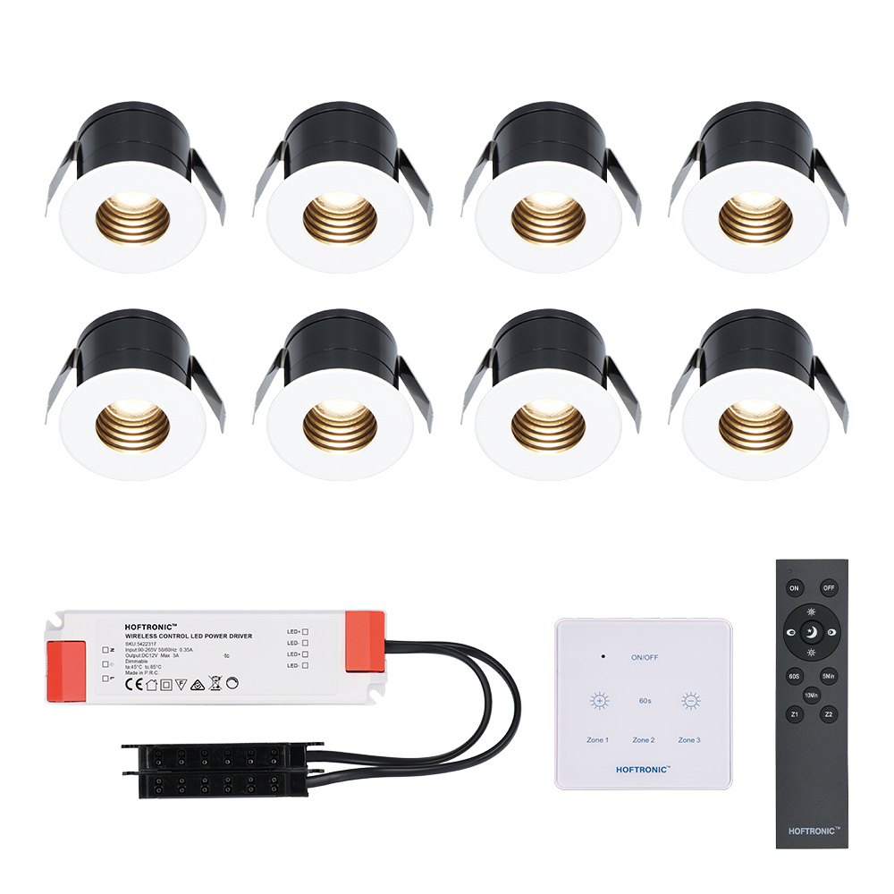 De Hoftronic Betty dimbare inbouwspot zijn traploos dimbaar, wat betekent dat je in een vloeiende overgang van 100% naar 0% kunt dimmen, en gedraaid. De kleurtemperatuur is 2700K, wat staat voor warm wit licht. Er wordt een afstandsbediening bij bezorgd. Zit je heerlijk in je luie stoel op de aanbouw, of lig je languit in bad en denk je: de verlichting staat toch iets te fel? Met de afstandsbediening dim je de verlichting regelrecht, en hoef je dus niet op te staan. Ideaal.