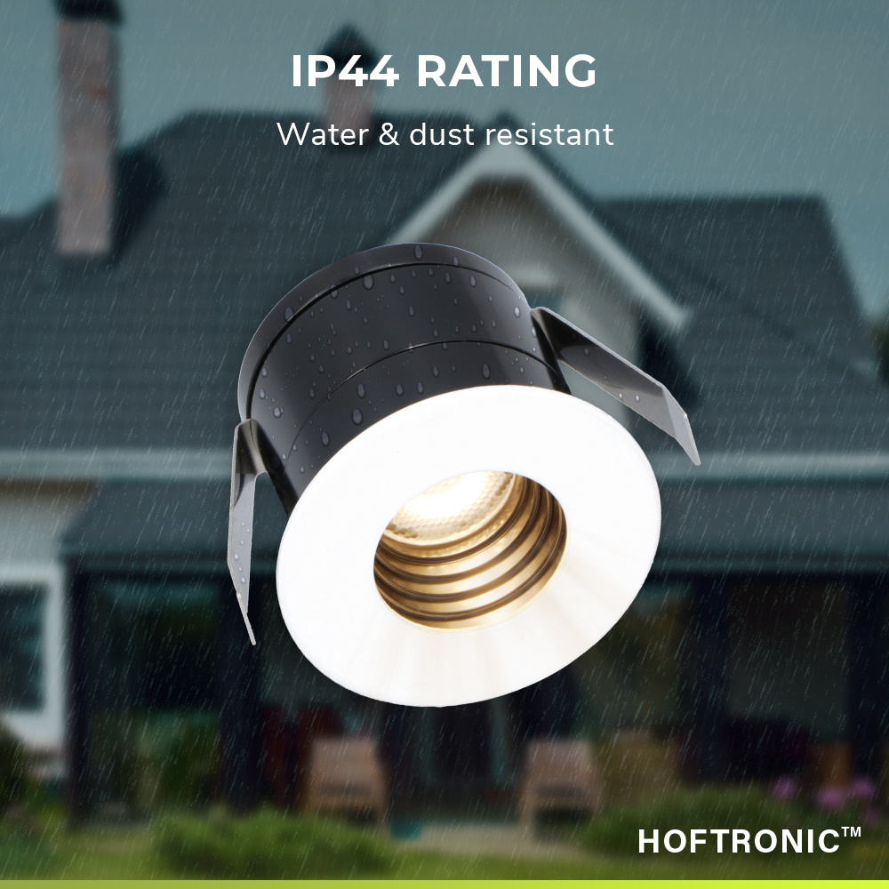 De inbouwspots zijn standaard voorzien van een IP44 protectie wat het dus misschien maakt om de spots buiten te installeren. De jumperbox en trafo waarop de spots worden ingestoken hebben echter een beschermingsgraad van IP20. Dit betekend dat als je spots buiten gaat installeren dat de jumperbox in een lasdoos geplaats dient te worden.